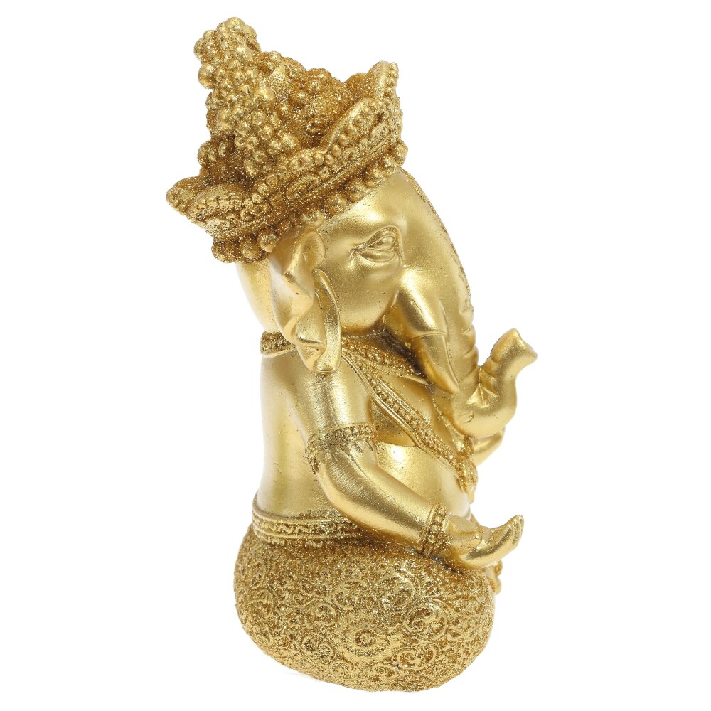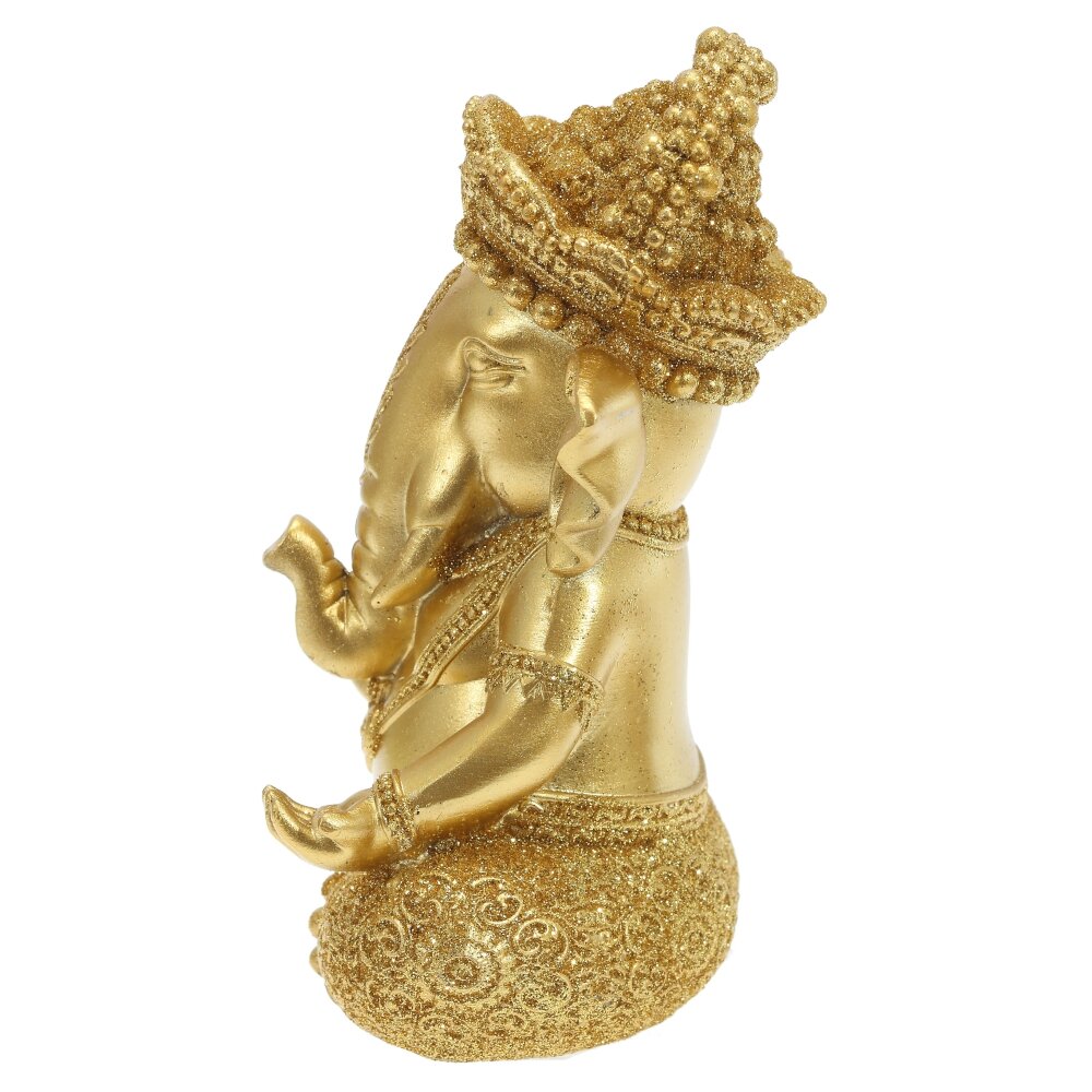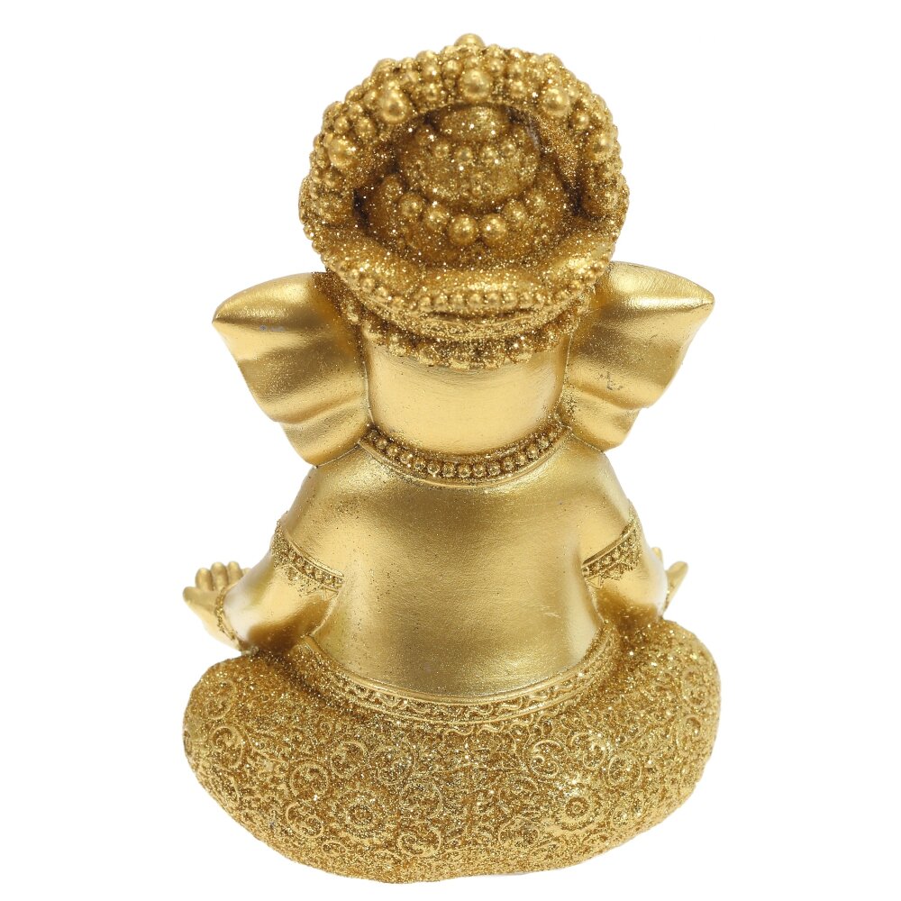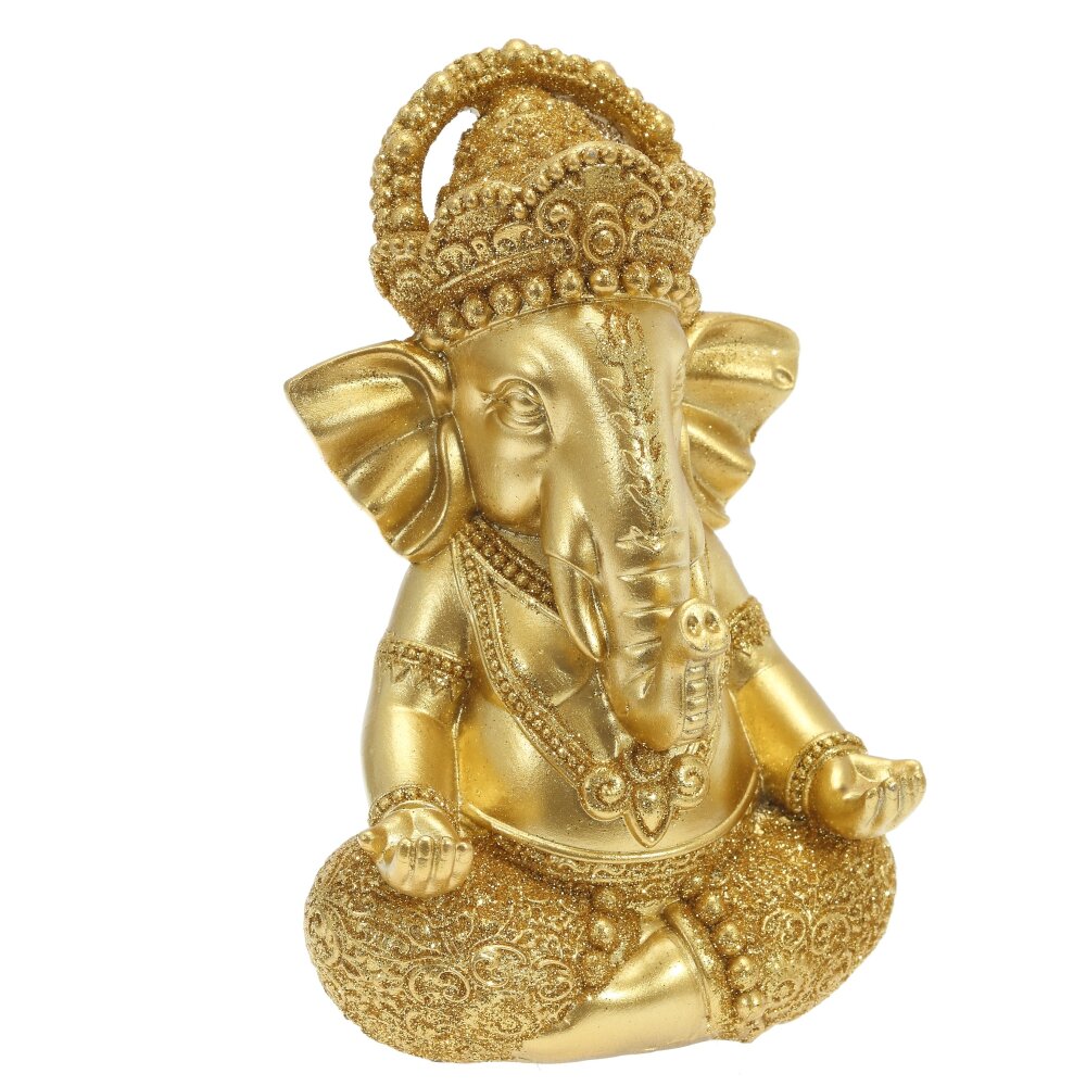 Фигурка декоративная ганеша, l10 w8 h15 см. Материал: Полимерные материалы Декоративная фигурка, выполненная из полимерных материалов и покрытая золотого цвета. Она изображает Ганешу — знаменитое индуистское божество с головой слона, символизирующее мудрость, благополучие и удачу. Яркая позолота придаёт изделию изысканный и благородный вид, делая его эффектным элементом интерьера. Фигурка детально проработана: можно рассмотреть сложные орнаменты на одежде, украшениях и головном уборе. Благодаря прочному полимеру, украшение имеет долгий срок службы, не боится влаги и механических повреждений. Такая статуэтка станет прекрасным подарком или стильным украшением для дома, напоминая о гармонии, процветании и счастье. Вес, кг: 0. 25