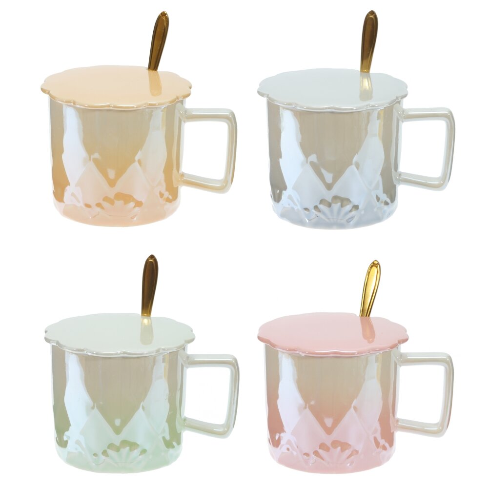 Кружка с крышкой, 420 мл, L13 W10 H9 см, 4в.