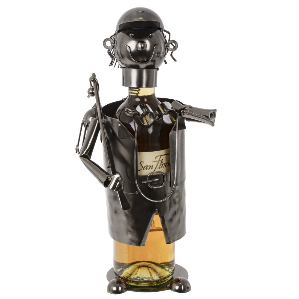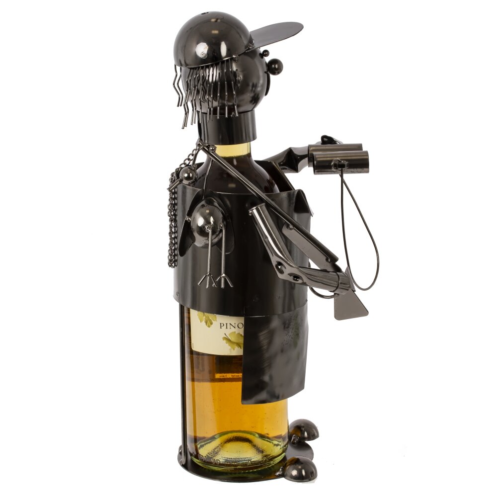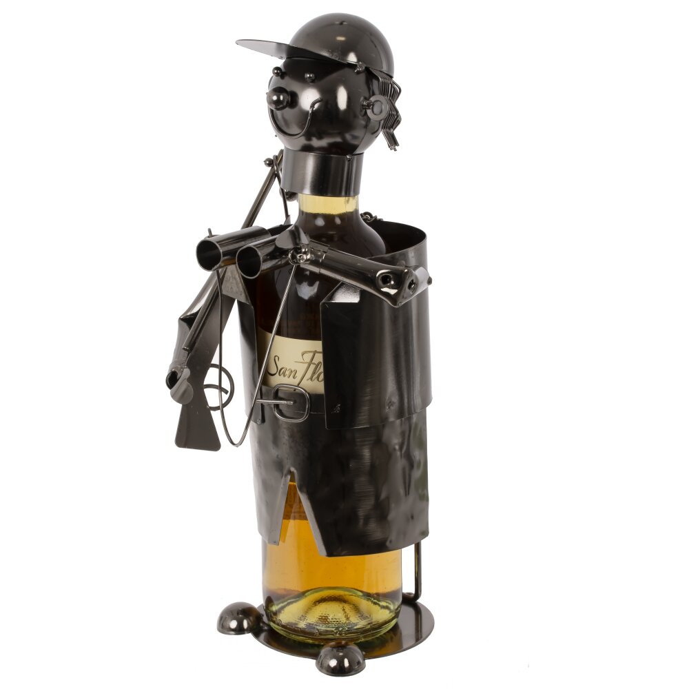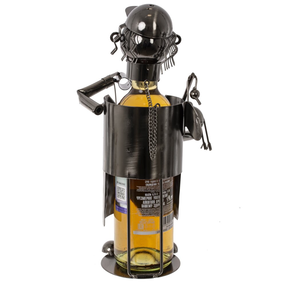 Подставка для бутылки охотник, l15 w13,5 h24,5 см. Материал: Металл Эта изящная подставка для бутылки станет настоящим украшением вашего интерьера, особенно если вы цените охотничью тематику. Изготовленная из прочного металла и имеющая размеры 15 см в длину, 13,5 см в ширину и 24,5 см в высоту, подставка выполнена в виде охотника, который уверенно держит в руках бинокль и ружье. Серый цвет придает изделию стильный и универсальный вид, позволяя ему гармонично вписаться в любое пространство — от кухни до зала. Охотник, изображенный в динамичной позе, придаёт подставке характер и привлекает взгляды, создавая ощущение приключения и свободы. Эта подставка не только эстетически приятна, но и очень практична: она надежно удерживает бутылки, добавляя элемент интереса к вашему столу или полке. Такой предмет станет замечательным подарком для любителей охоты подчеркивая их увлечения и стиль жизни. Разместите её в зоне отдыха, на кухне или в кабинете — в любом месте она будет служить не только функциональным, но и декоративным элементом. Подставка для бутылки в виде охотника — это отличный способ выразить свою индивидуальность и подчеркнуть интересы. Вес, кг: 0. 561