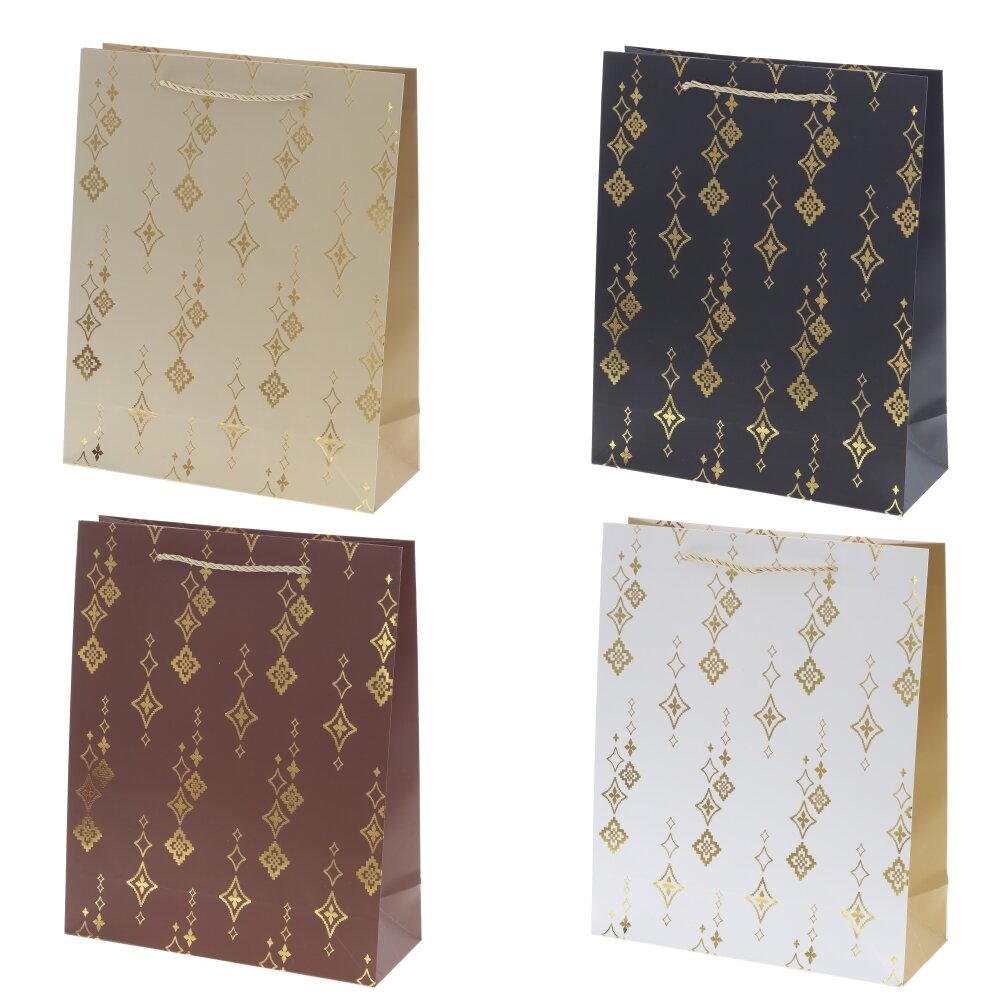 Пакет подарочный (бумага 210г/м2, блок микс 12шт), L26 W10 H32 см, 4в.