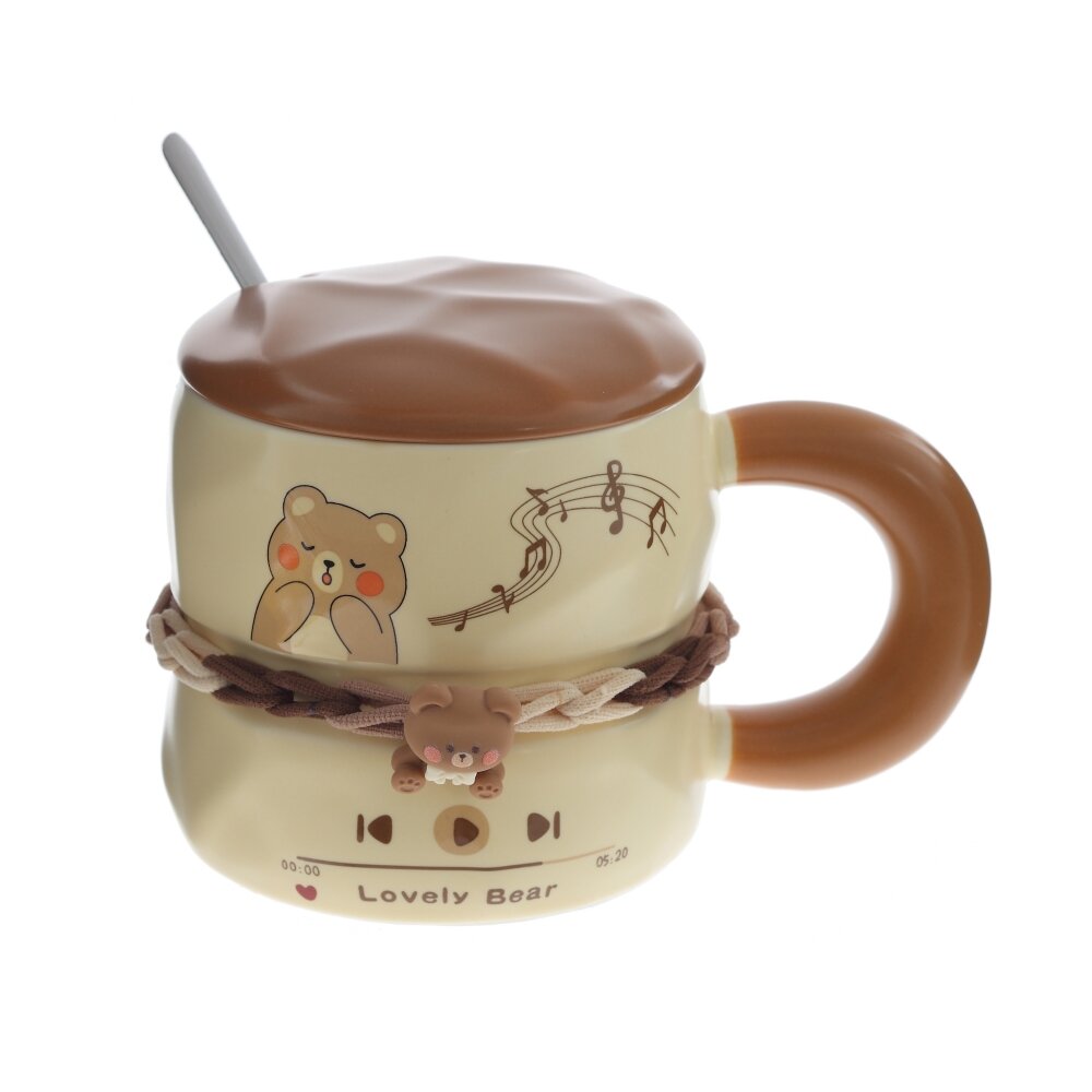 Кружка с крышкой и ложкой, 300 мл, L15 W9 H10 см, 4в.