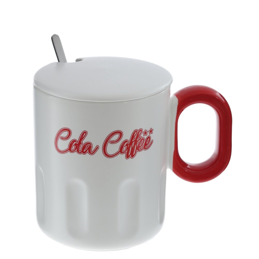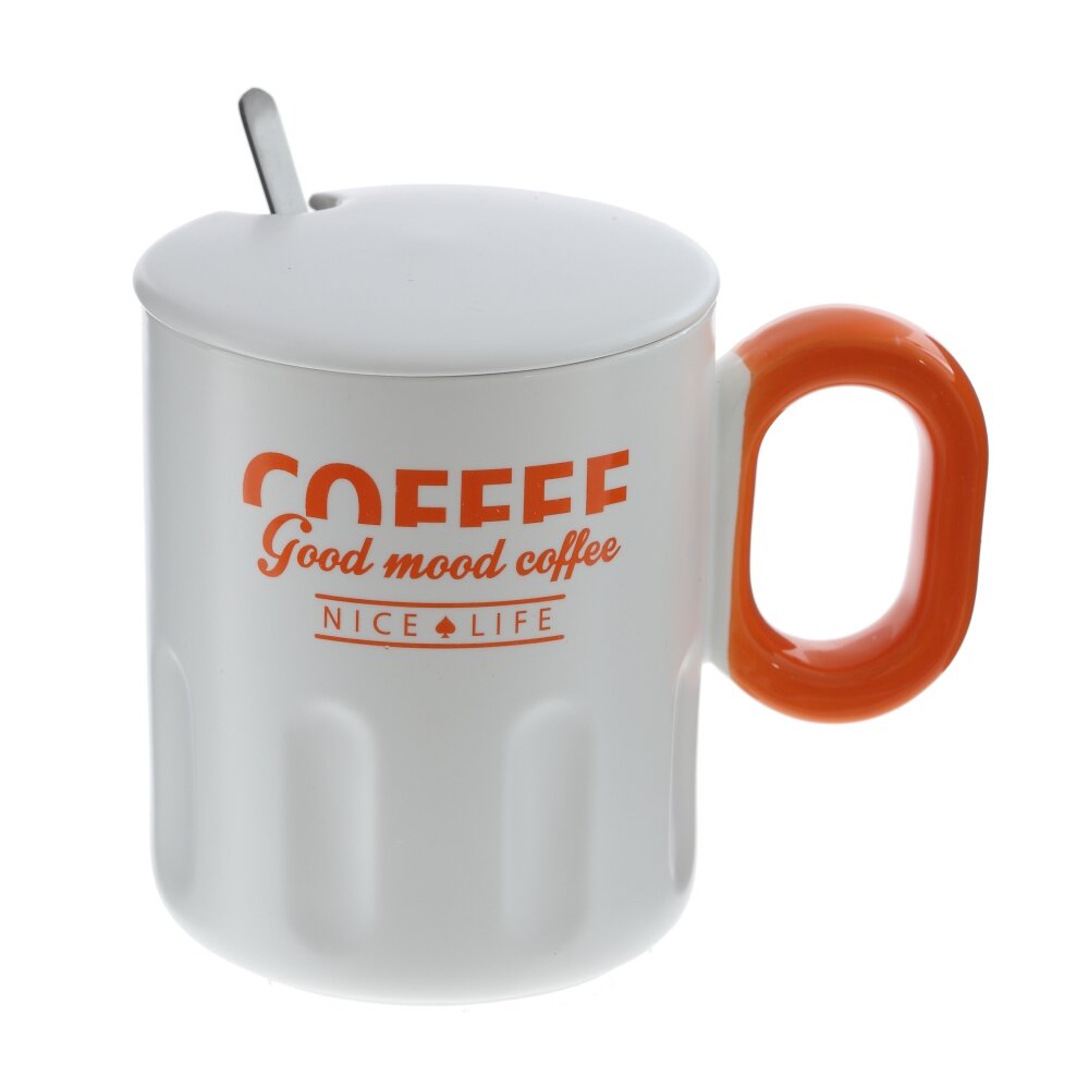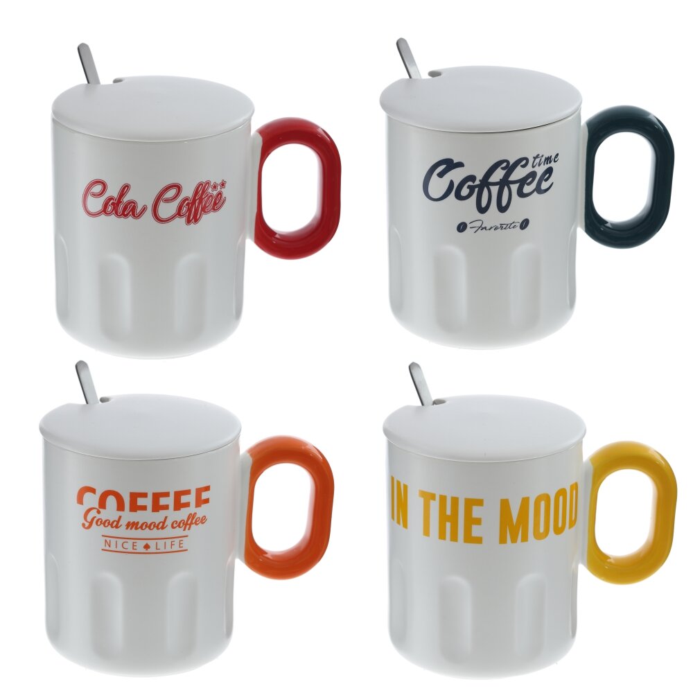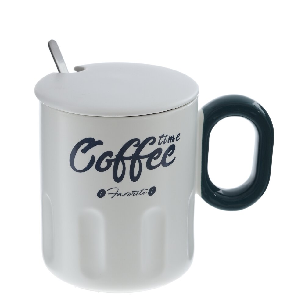 Кружка с крышкой и ложкой, 350 мл, L13 W9 H11 см, 4в.