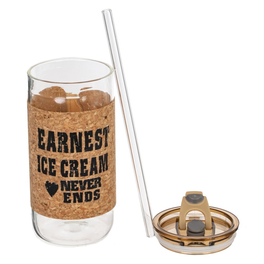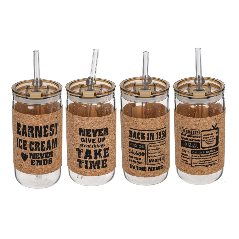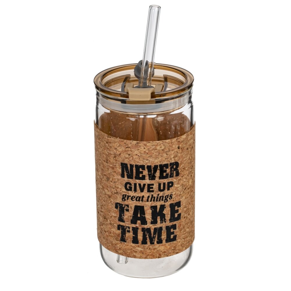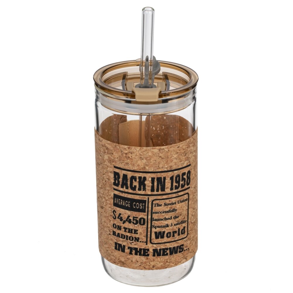 Бутылка с трубочкой, 410 мл, l7 w7 h14,5 см, 4в.. Материал: Стекло/Полимерные материалы Стильная бутылка с трубочкой объемом 410 мл, выполненная из прозрачного стекла и полимерных материалов. Полимерная крышка с центральным отверстием и уплотнением надежно удерживает многоразовую трубочку и снижает риск брызг. На корпусе — декоративная пробковая манжета с крупным принтом , которая улучшает хват и придает изделию характерный вид. Цилиндрическая форма удобна в руке, стекло не впитывает запахи и легко очищается. Идеальна для воды, лимонадов, смузи, холодного чая или кофе со льдом — дома, в офисе и в поездках. Рекомендуется ручная мойка, избегать кипятка и сильных ударов. Многоразовое решение для ежедневного использования. Представлено в четырех вариантах. Вес, кг: 0. 244