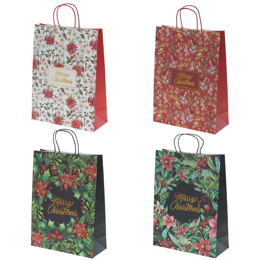 Пакет подарочный (бумага 210г/м2, блок 12шт), L30 W12 H40 см, 4в.