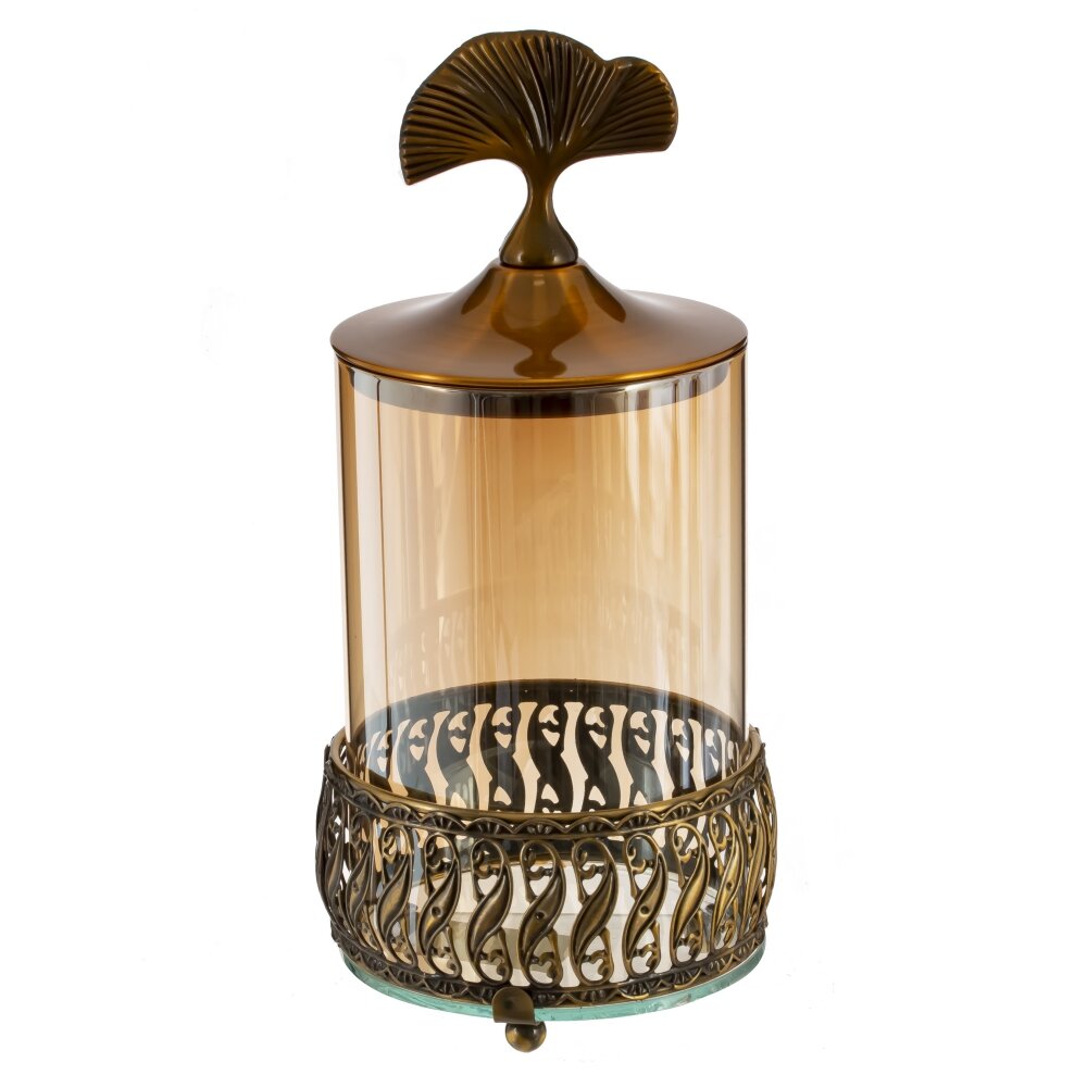Конфетница, l11 w11 h24 см. Материал: Стекло/Металл Эта изысканная конфетница изготовлена из стекла и металла, сочетая в себе практичность и элегантность. Прозрачные стеклянные стенки позволяют видеть содержимое, а металлический корпус украшен изящными узорами, придающими изделию роскошный и антикварный вид. Основание выполнено из прочного металла с декоративными элементами, создающими ощущение классического дизайна. Крышка снабжена оригинальной ручкой в форме листа, что делает предмет еще более утонченным. Такая конфетница станет прекрасным украшением интерьера и дополнит сервировку стола на празднике или в повседневной жизни. Вес, кг: 0. 468