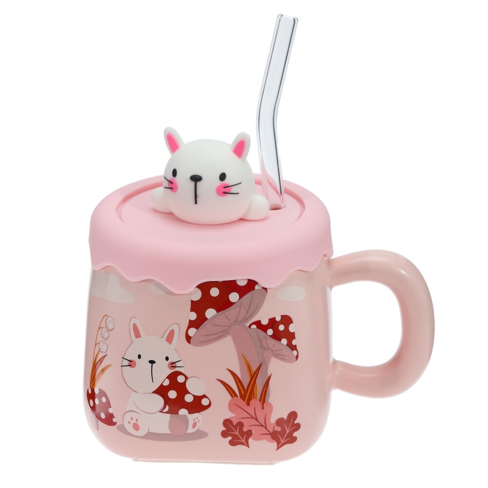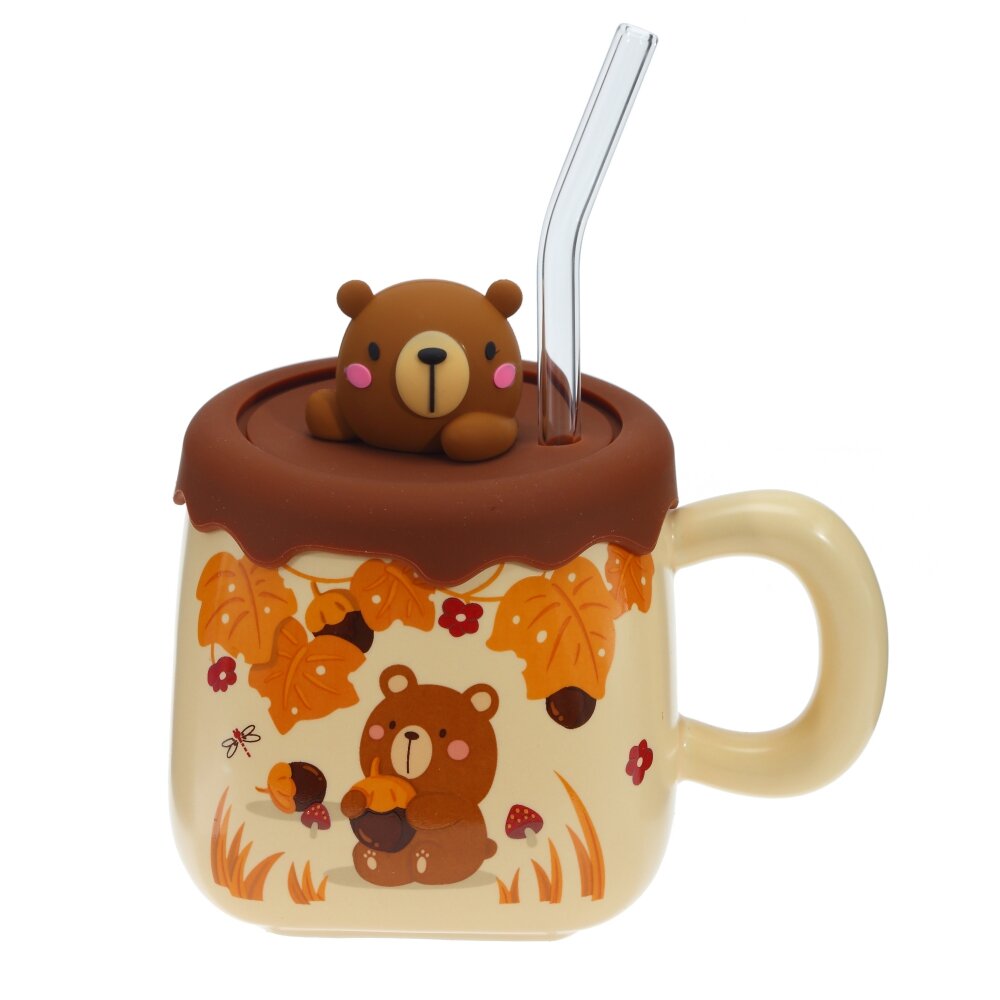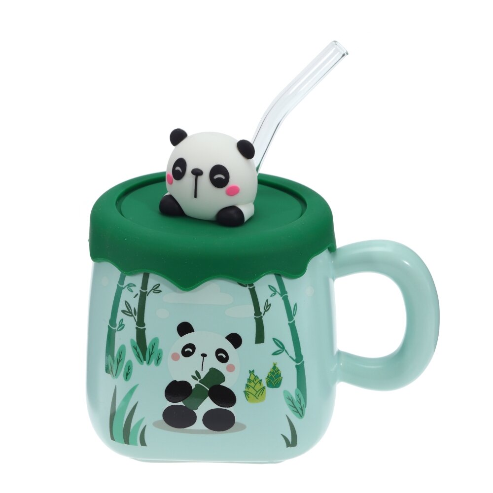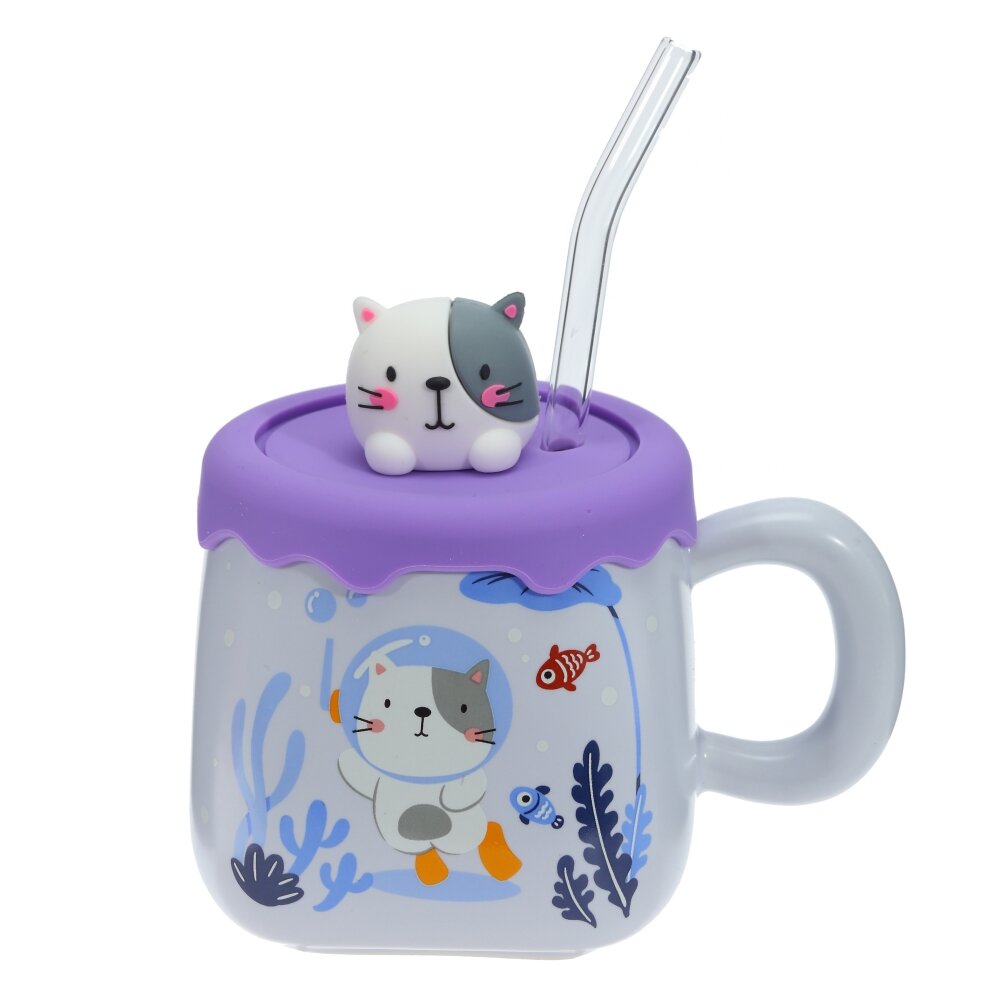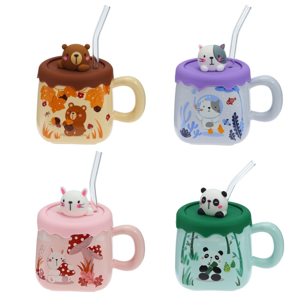 Кружка с крышкой и трубочкой, 400 мл, L13 W9,5 H12 см, 4в.