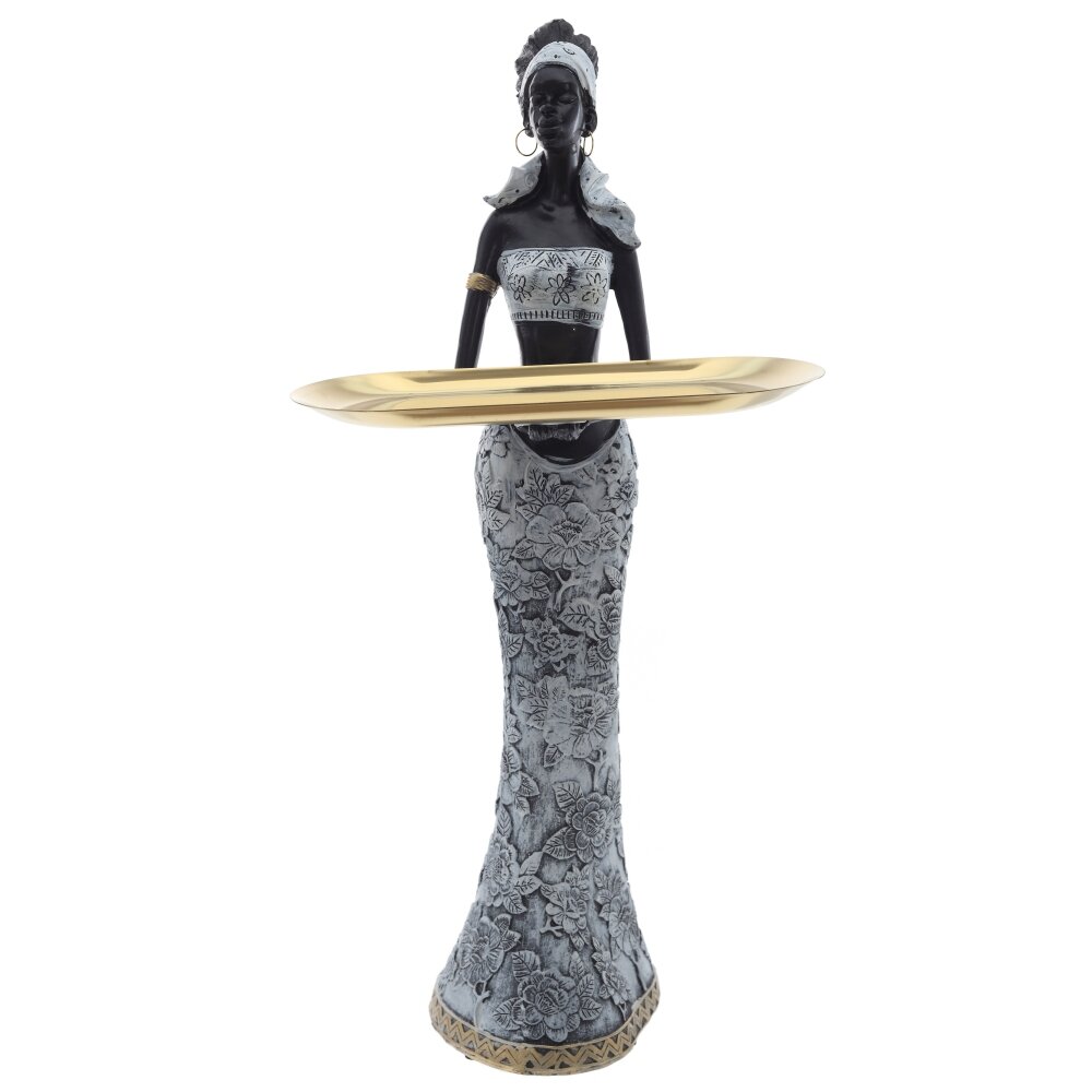 Фигурка декоративная африканка с подносом, L22,5 W16,5 H45 см