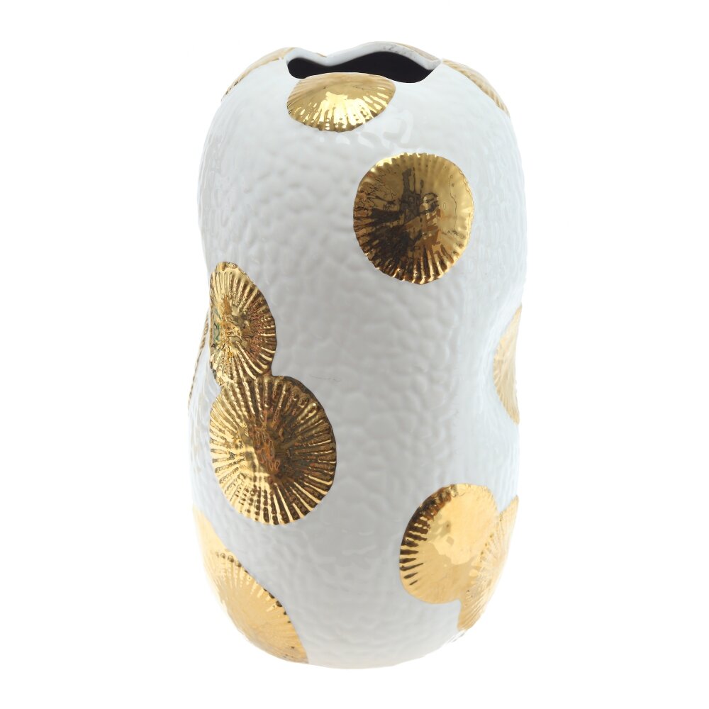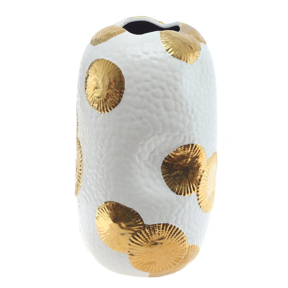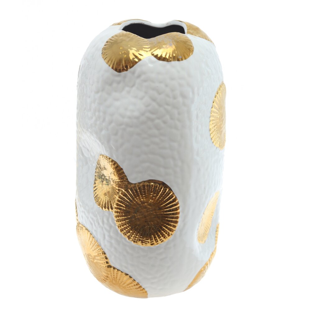 Ваза, 3600 мл, l15 w15 h27,5 см. Материал: Фарфор Эта ваза станет ярким акцентом в вашем интерьере, придавая ему утончённость и элегантность. Изготовлена из фарфора. Ваза идеальна как самостоятельный элемента декора, так и в сочетании с цветами. Она великолепно подчеркнёт как свежие букеты, так и сухие композиции, создавая уникальную атмосферу в вашем доме. Белый цвет символизирует чистоту и гармонию, а золотые акценты придают вазе особое изящество, что делает её идеальной для любого интерьера — от классического до современного. Эта ваза станет не только стильным дополнением вашего пространства, но и прекрасным подарком для друзей и близких. Создайте уют и красоту с помощью этой изысканной вазы, которая несомненно привлечет взгляды и станет настоящим произведением искусства в вашем доме. Диаметр горловины: 6 см. Вес, кг: 1. 672