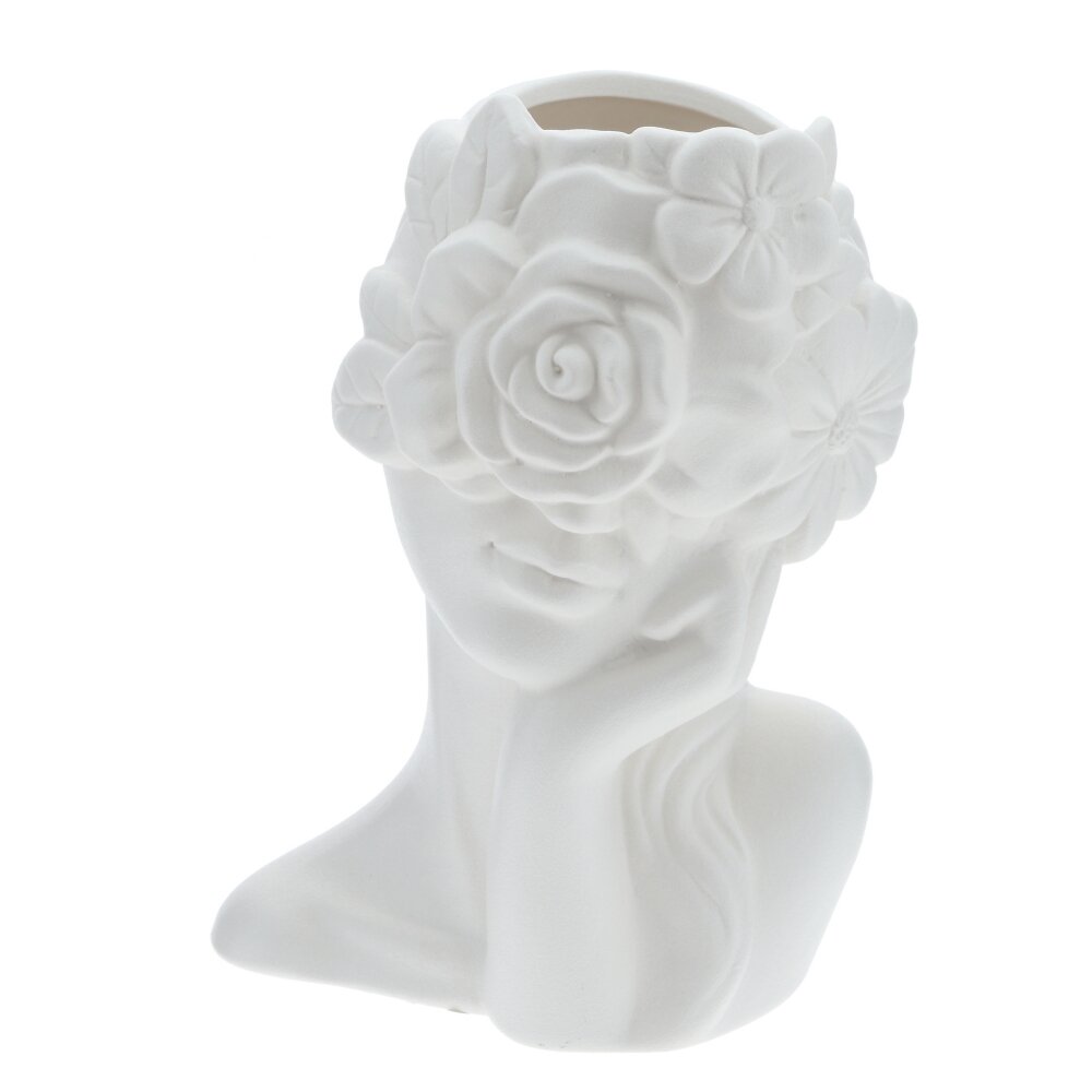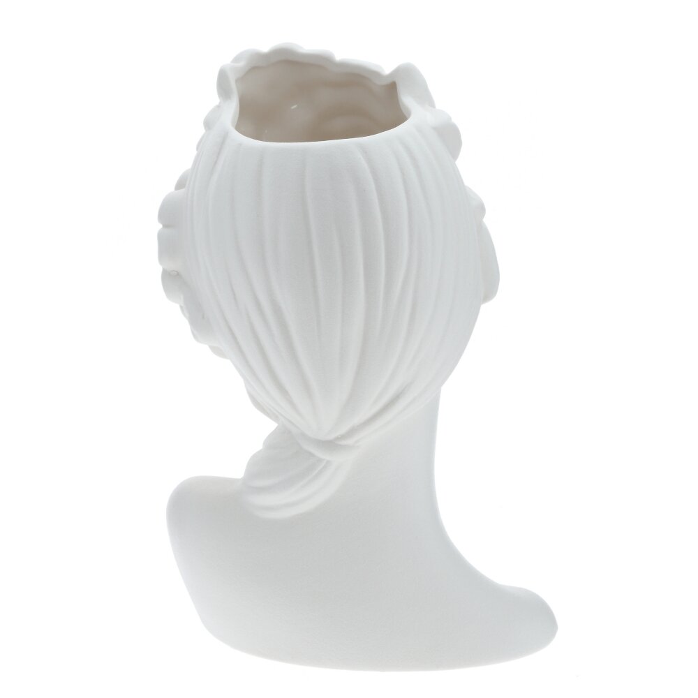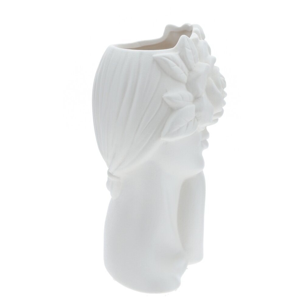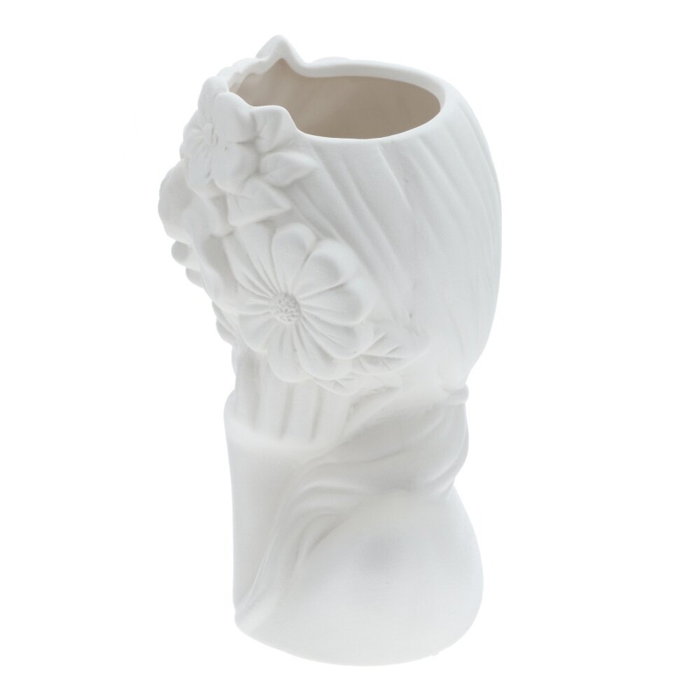 Ваза, 700 мл, l14 w10,5 h19 см. Материал: Фарфор Эта фарфоровая ваза объёмом 700 мл представляет собой настоящий предмет искусства и изысканный элемент декора. Её оригинальная форма выполнена в виде женской головы, лицо которой частично скрыто крупными цветками, что придаёт изделию загадочность и утончённость. Гладкая белоснежная поверхность подчёркивает благородство материала — фарфора, который отличается прочностью и долговечностью. Ваза отлично впишется в интерьер в стиле минимализм, модерн или классика, добавив нотку элегантности и современности. Благодаря уникальному дизайну, ваза может стать не только функциональной ёмкостью для цветов, но и самостоятельным декоративным акцентом в гостиной, спальне или кабинете. Такой аксессуар способен гармонично дополнить как домашний уют, так и офисное пространство, а благодаря высокому качеству исполнения прослужит долгое время, радуя своим внешним видом. Диаметр горловины: 6 см. Вес, кг: 0. 68