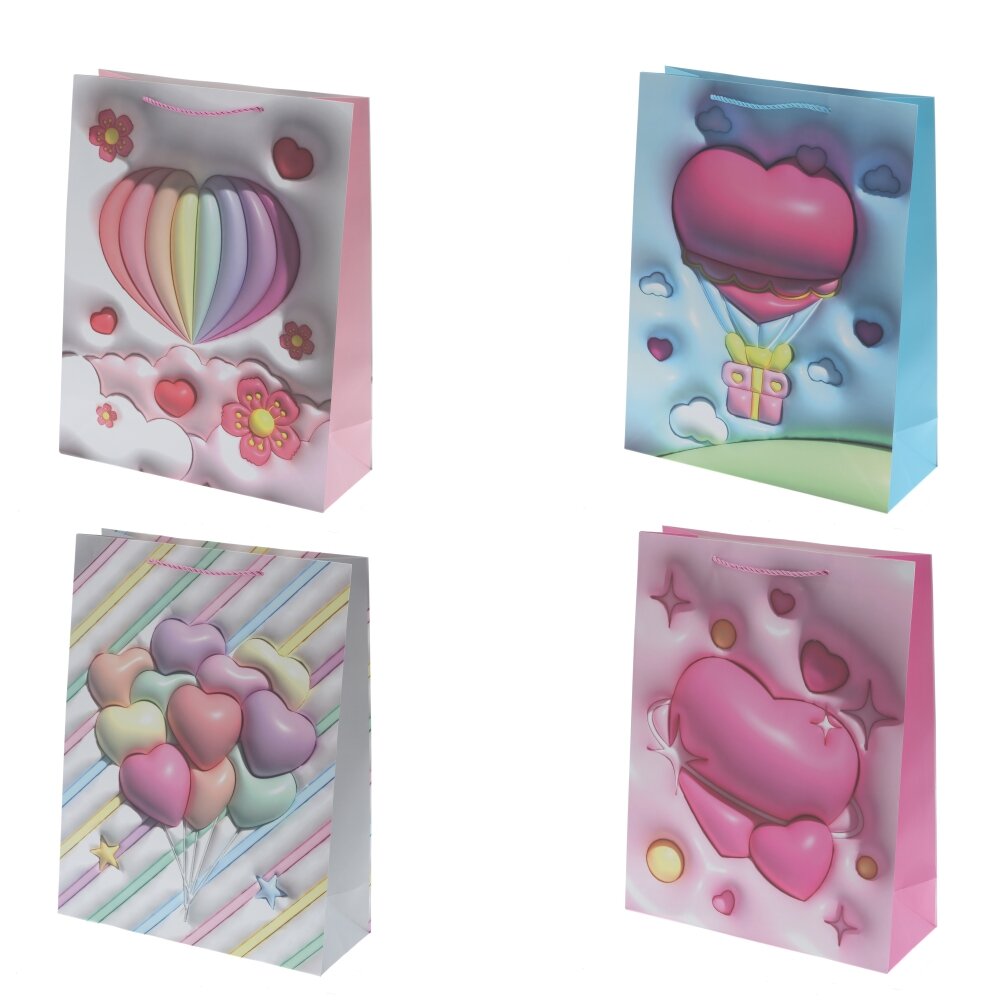 Пакет подарочный (бумага 210г/м2, блок микс 12шт), L31 W12 H40 см, 4в.
