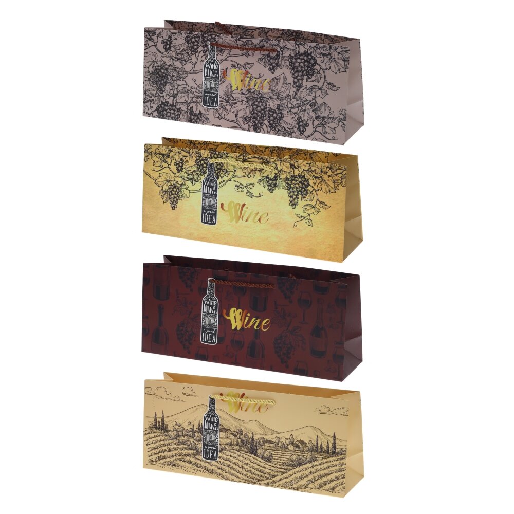 Пакет подарочный (бумага 210г/м2, блок 12шт), L37 W10 H15,5 см, 4в.