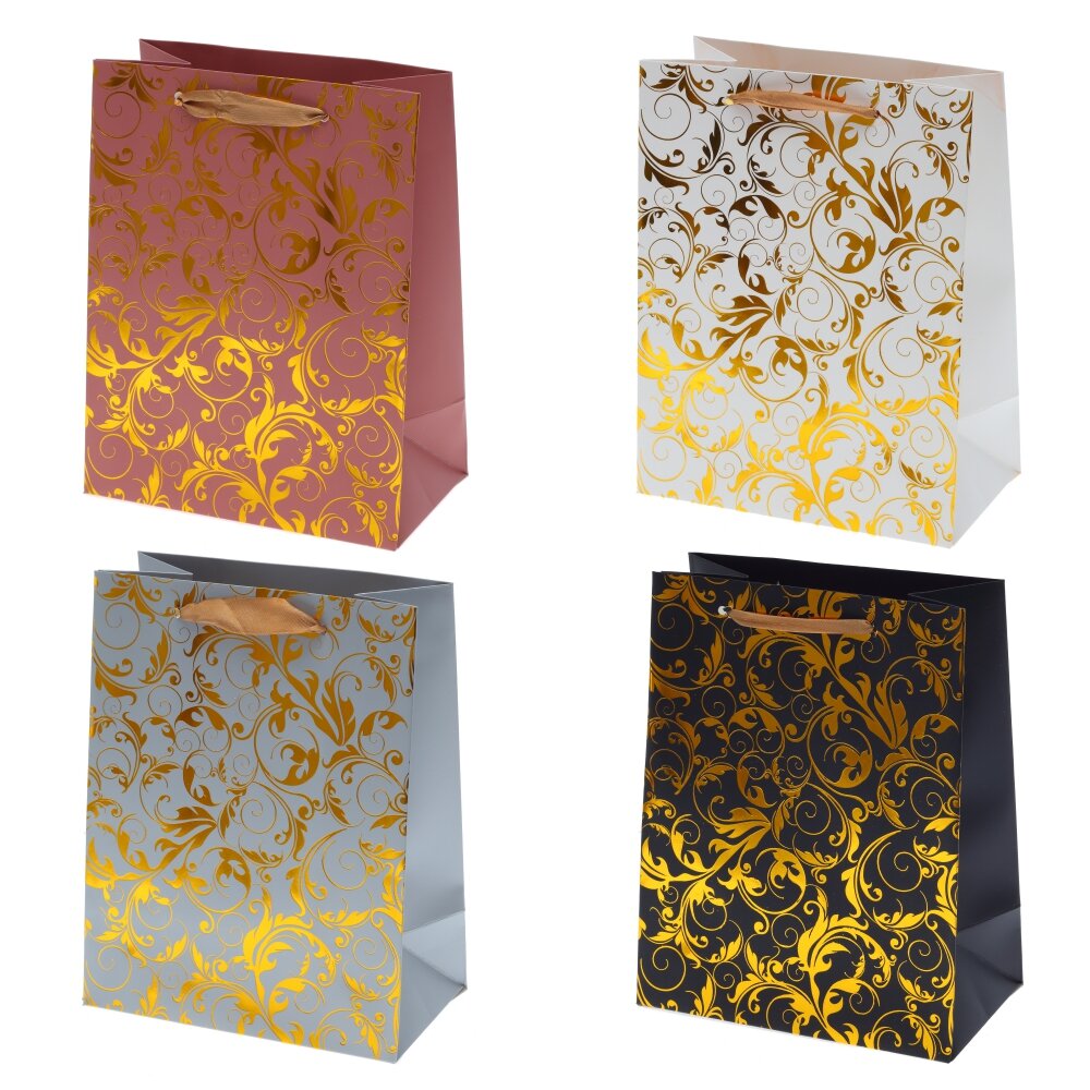 Пакет подарочный (бумага 210г/м2, блок 12шт), L18 W10 H23 см, 4в.