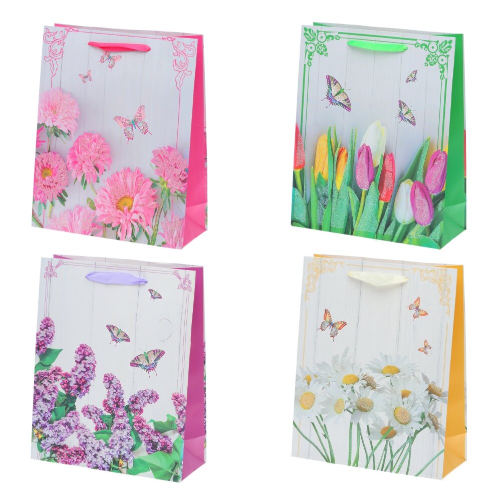 Пакет подарочный (бумага 210г/м2, блок микс12шт), L26 W10 H32 см, 4в.