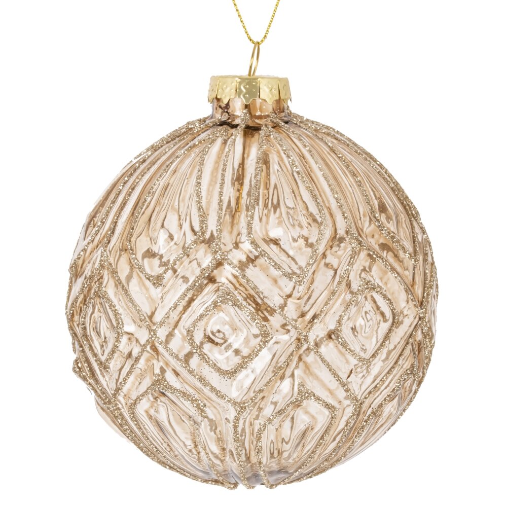 Украшение новогоднее шар, l9 w9 h11 см. Материал: Стекло Новогоднее украшение Шар изготовлено из тонкого и прочного стекла, что делает его легким и удобным для подвешивания на елку. Благодаря специальной технике исполнения, изделие красиво переливается на свету. Шар будет прекрасно смотреться на елках любого стиля, придавая им ощущение волшебства и зимней красоты. Вес, кг: 0. 042