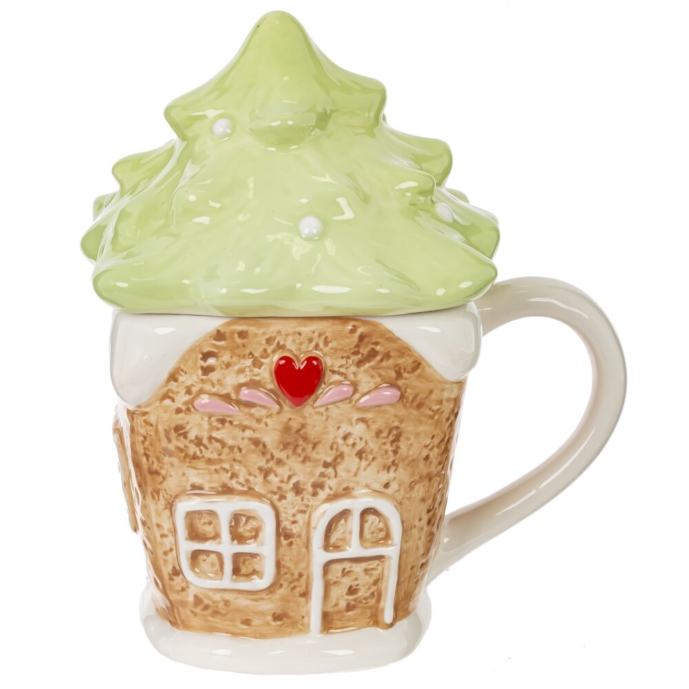 Кружка с крышкой пряник, 300 мл, L13 W10 H15 см