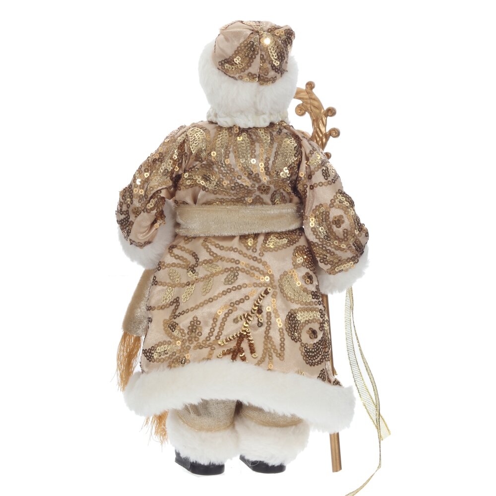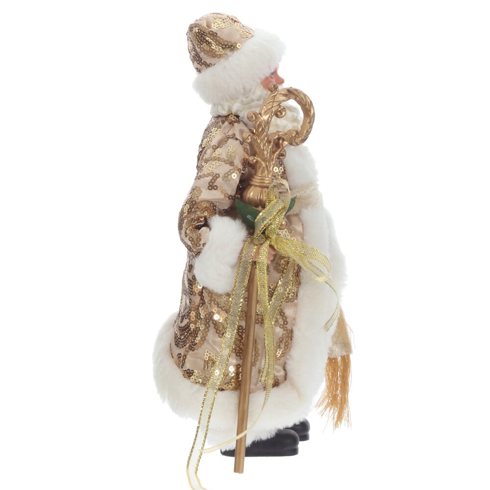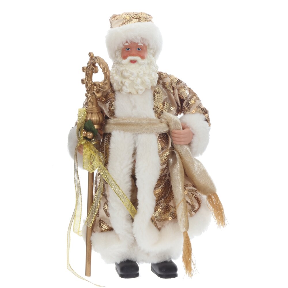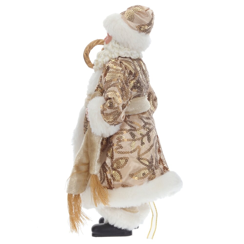 Дед мороз, l15 w9 h27 см. Материал: Полимерные материалы/Текстиль Декоративное изделие Дед Мороз выполнено из полимерных и текстильных материалов, сочетая в себе прочность и уютную текстуру. Фигурка представлена в традиционном костюме с меховой отделкой, тщательно проработанными деталями и декоративными элементами. Лицо Деда Мороза выполнено с особым вниманием: выразительные черты, густая белая борода и добрые глаза придают образу тепло и сказочность. Текстильные элементы делают фигурку особенно уютной и приятной на вид. Такое украшение станет ярким акцентом в новогоднем интерьере, украсит камин, полку или подножие ёлки, наполняя дом атмосферой волшебства и праздничного настроения. Вес, кг: 0. 218