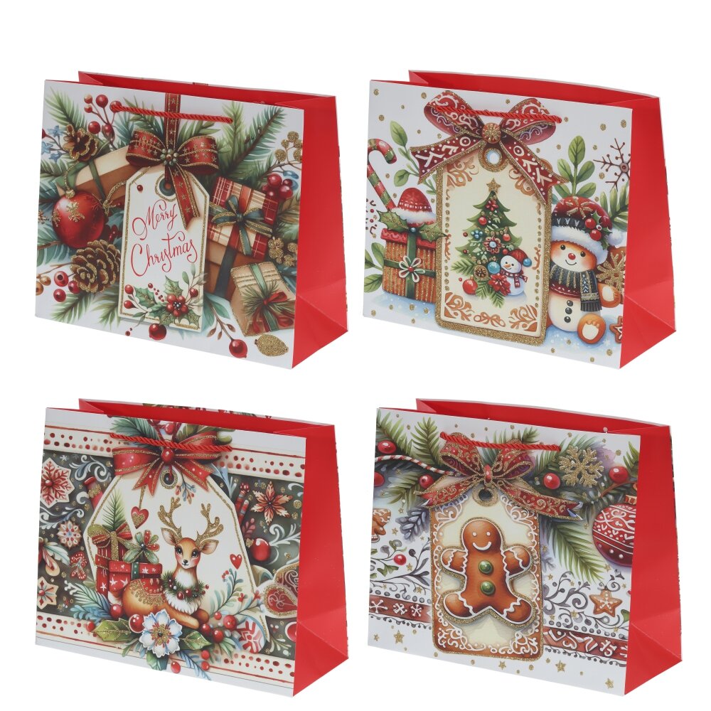 Пакет подарочный (бумага 210г/м2, блок 12шт), L31 W12 H42 см, 4в.