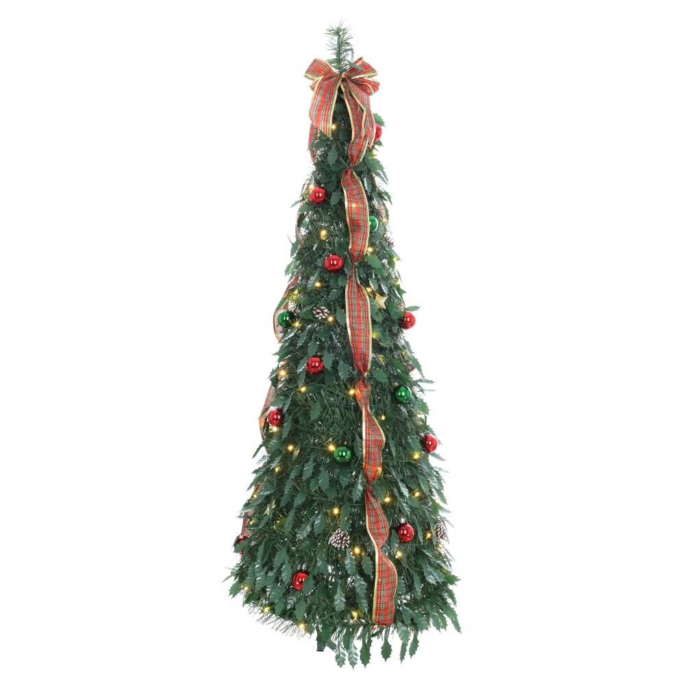 Ёлка искусств с подсвет от сети, L50 W50 H150, 100led, 30 шаров +3 бант+6 шишек, экспресс сборка