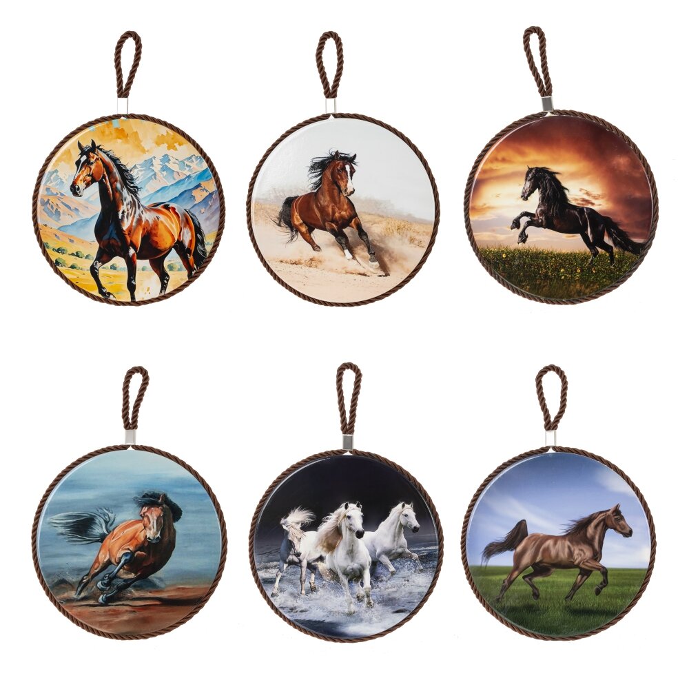 Декоративная подставка под горячее с подвеской лошадь, L17 W17 H0,5 см, 6в.