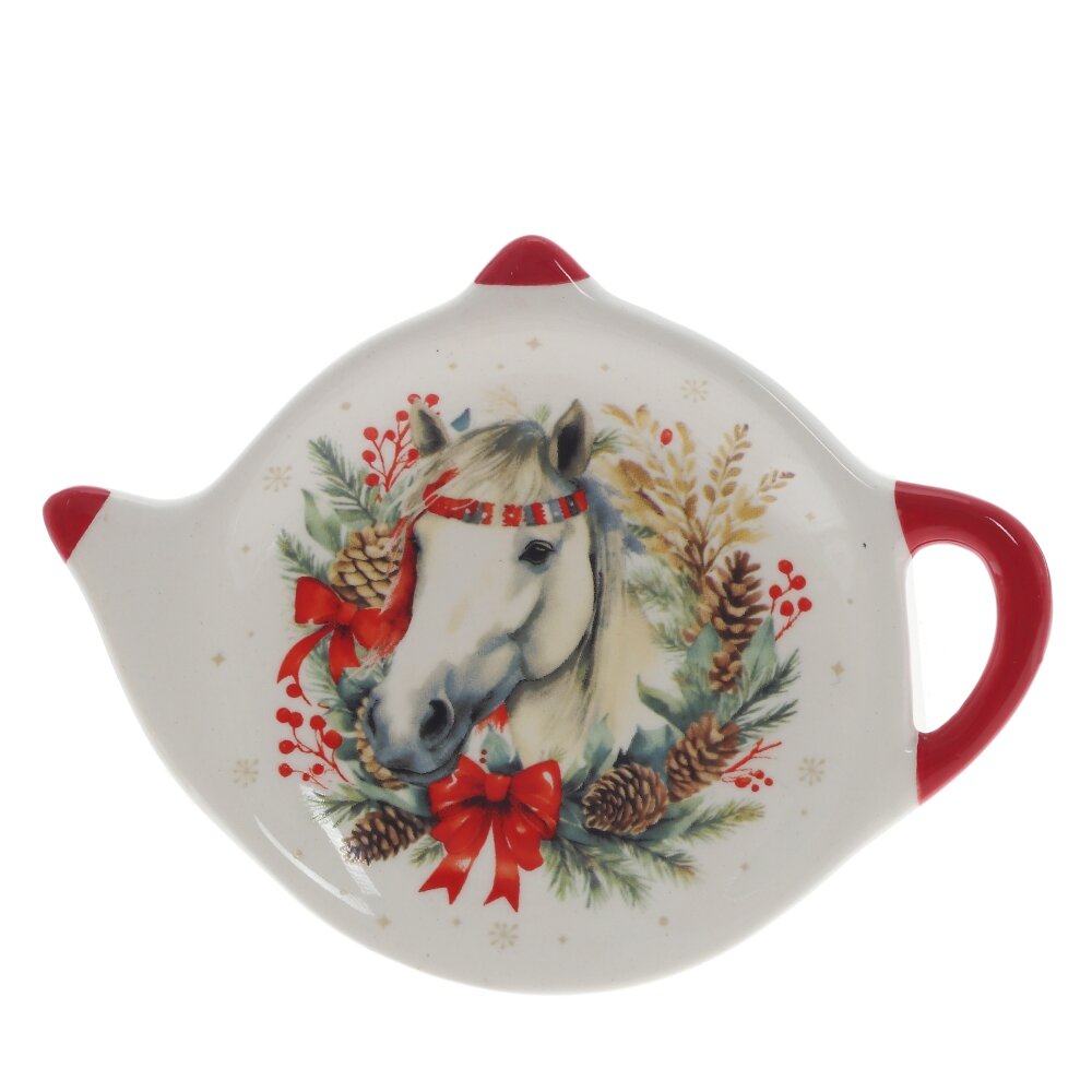 Подставка для чайных пакетиков лошадь, l12 w9 h1 см. Материал: Керамика Подставка для чайных пакетиков с новогодним декором и символом 2026 года — изящной лошадкой — станет прекрасным дополнением праздничного интерьера или оригинальным подарком к Новому году. Изготовленная с вниманием к деталям, она украшена яркими зимними элементами: снежинками, веточками и праздничными акцентами, создающими волшебное настроение. Изделие упаковано в стильную подарочную коробку, что делает его готовым решением для подарка родным, коллегам или друзьям. Символ года — лошадка — символизирует силу, стремление вперёд и благополучие, придавая изделию особую смысловую ценность. Вес, кг: 0. 084