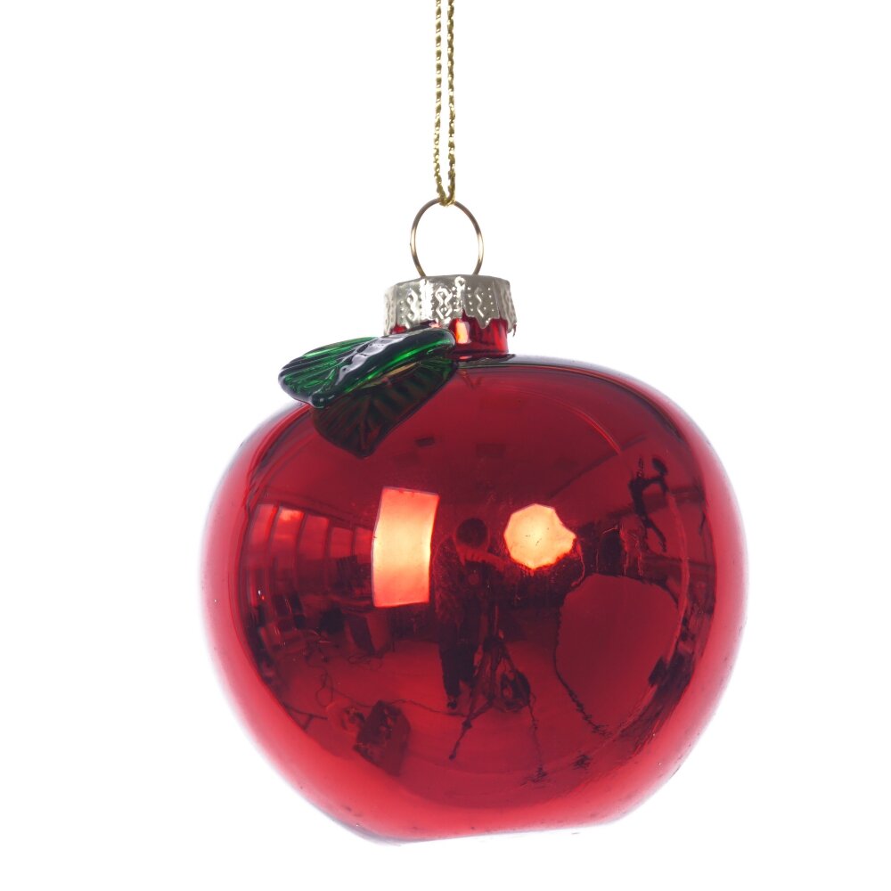 Украшение новогоднее яблоко, l6 w6 h7,5 см. Материал: Стекло Это изысканное стеклянное украшение в форме яркого красного яблока с глянцевой поверхностью станет великолепным дополнением новогоднего декора. Яблоко выполнено из стекла с насыщенным красным оттенком, который подчёркивает натуральную сочность и свежесть фрукта. Глянцевая поверхность украшения придаёт ему эффект зеркального блеска, отражая свет гирлянд и создавая впечатление настоящего, свежесобранного яблока. Тонкая роспись и аккуратные детали, такие как маленький зелёный листок и изящный хвостик, делают украшение ещё более реалистичным и выразительным. Такое изделие идеально впишется в любой праздничный интерьер, добавляя ему яркости, теплоты и естественной красоты. Красное яблоко из стекла символизирует изобилие, здоровье и счастье, поэтому оно станет не только стильным акцентом на ёлке, но и приятным талисманом для вашего дома в новогодние праздники. Вес, кг: 0. 043