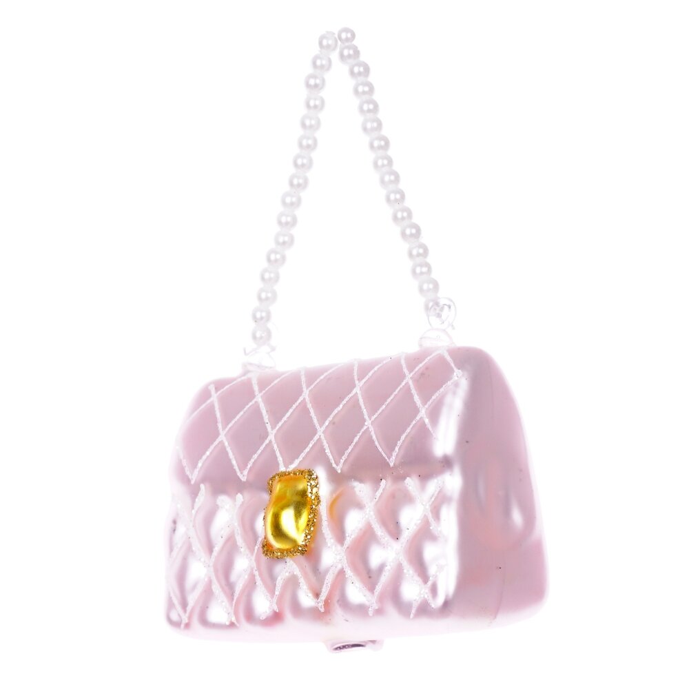 Украшение новогоднее сумочка, l7 w3,5 h5,5 см. Материал: Стекло Новогоднее украшение из стекла в виде элегантной сумочки выполнено в изысканном розовом цвете, который придаёт изделию утончённость и праздничный блеск. Поверхность украшения декорирована мерцающими деталями и нежным орнаментом, напоминающим морозные узоры. Благодаря глянцевому покрытию и игре света, стеклянная сумочка переливается и создаёт ощущение волшебства. Такое украшение станет необычным и стильным акцентом на новогодней ёлке, привлекая внимание своим оригинальным дизайном. Оно идеально подойдёт для тематического декора в светлых тонах и станет прекрасным дополнением к коллекции изысканных ёлочных игрушек. Вес, кг: 0. 021