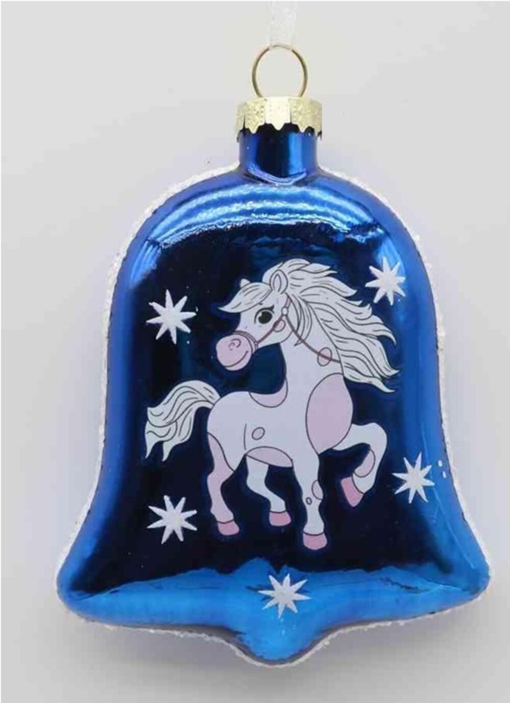 Украшение новогоднее колокольчик с лошадкой, L8 W2,5 H11 см