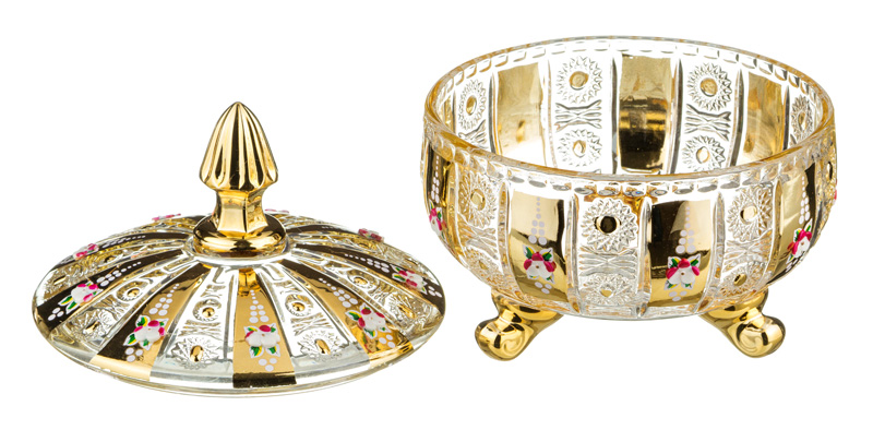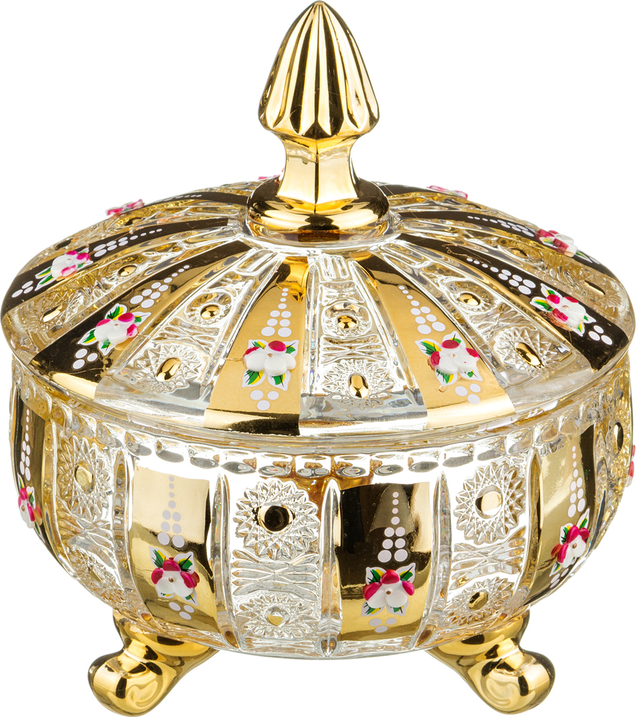 Конфетница с крышкой lefard gold glass диаметр=17 см высота=21 см.