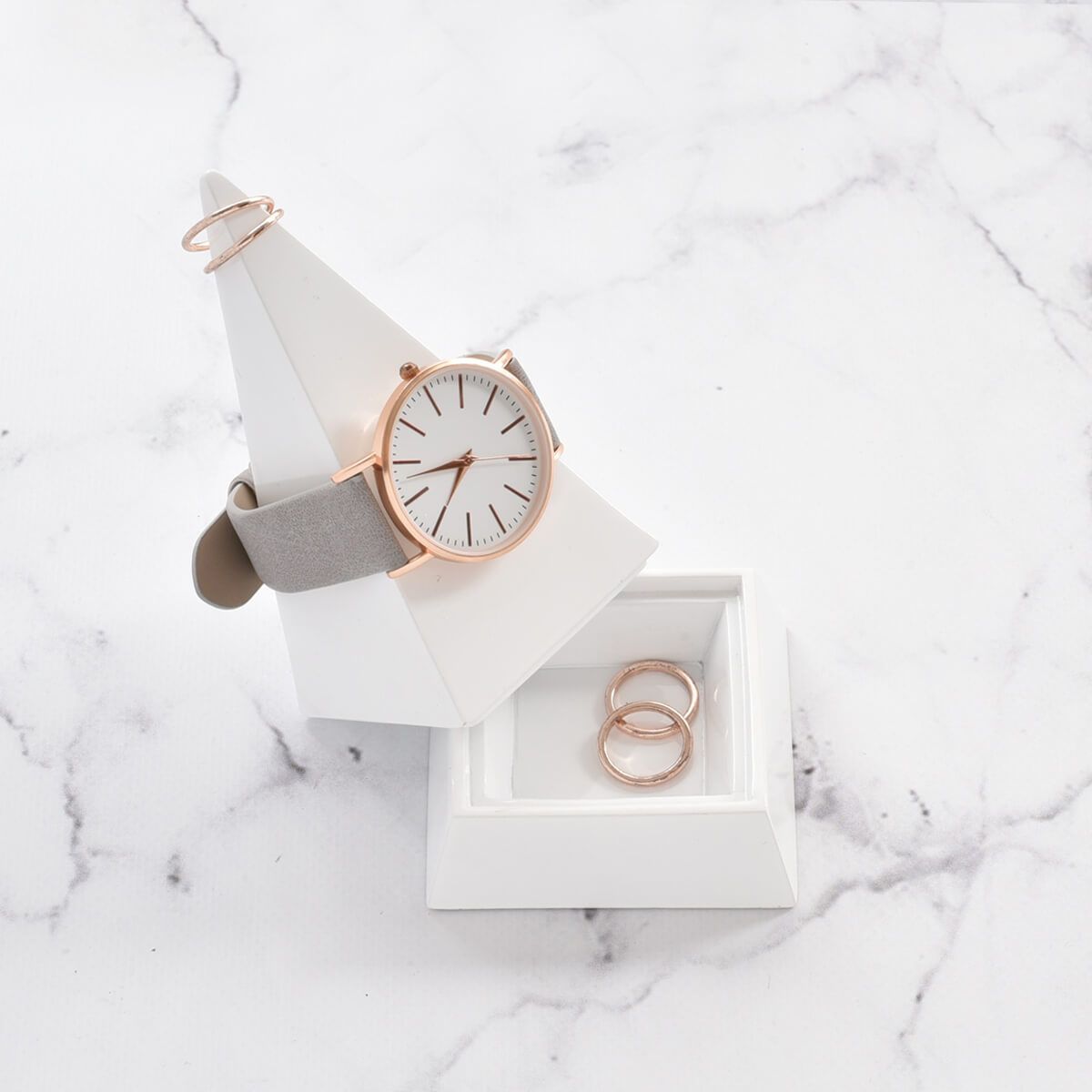 Пирамида большая для драгоценностей LC Designs Co. Ltd. арт. 73712, красивого белого цвета из полимера. Большие валики для сережек и колец, пять лотков для украшений и большое отделение для цепочек - все это расположено в шкатулке. Закрывается на клипсу.