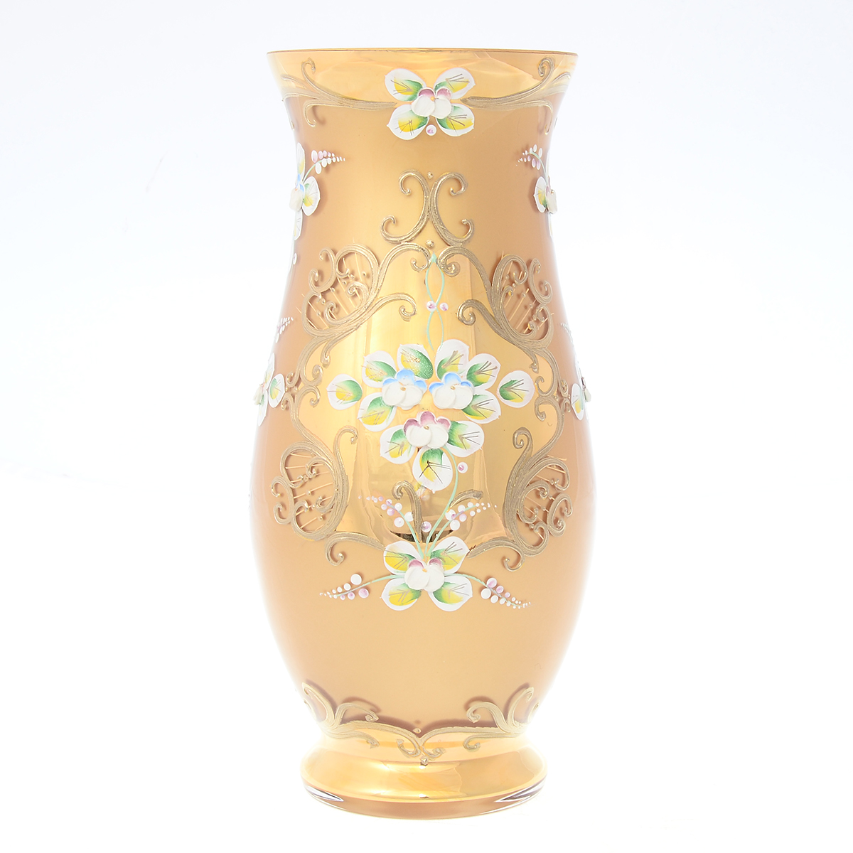Ваза bohemia лепка золотая e-s 30 см. Ваза Bohemia лепка золотая E-S 30 см Специально для поклонников этого сочного, теплого и уютного оттенка. Это именно тот случай, когда не цветы украшают вазу, а вазу цветы: ручная роспись, лепка и зеркальная позолота делают представленную модель неповторимой. Спешите стать обладателем очередного шедевра от известного бренда хрустального стекла.  развернуть описание ▼