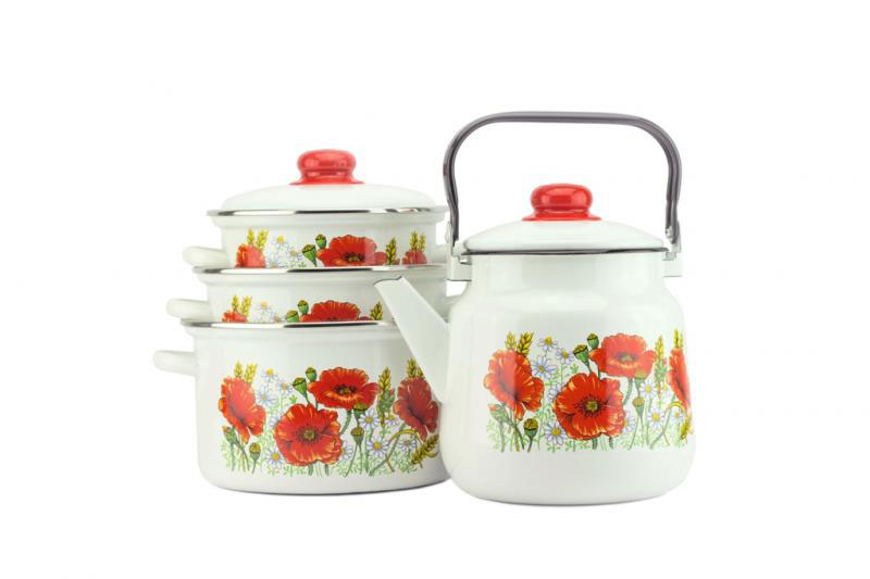 Эмал.набор 2-3082/4 уралочка 3кастр.+чайник