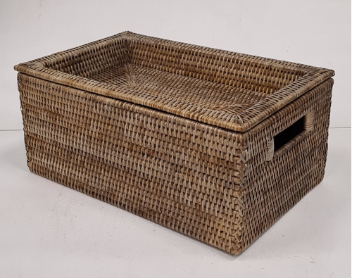Наименование: Корзина с крышкой Артикул: 20-0009 G Цвет: серый Размер: длина: 35 см , ширина: 22 см, высота: 15.8 см Состав: ротанг