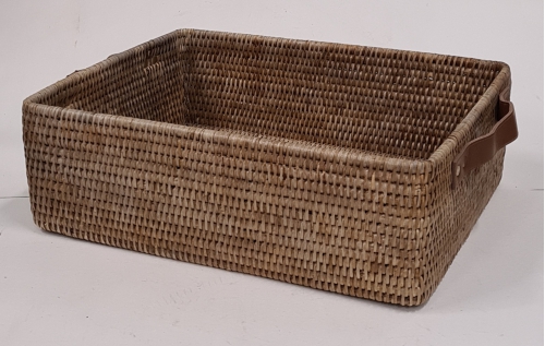 Наименование: Корзина для хранения Артикул: 20-0016 G Цвет: серый Размер: 38 см, ширина:30 см, высота борта:12.5 см Состав: ротанг