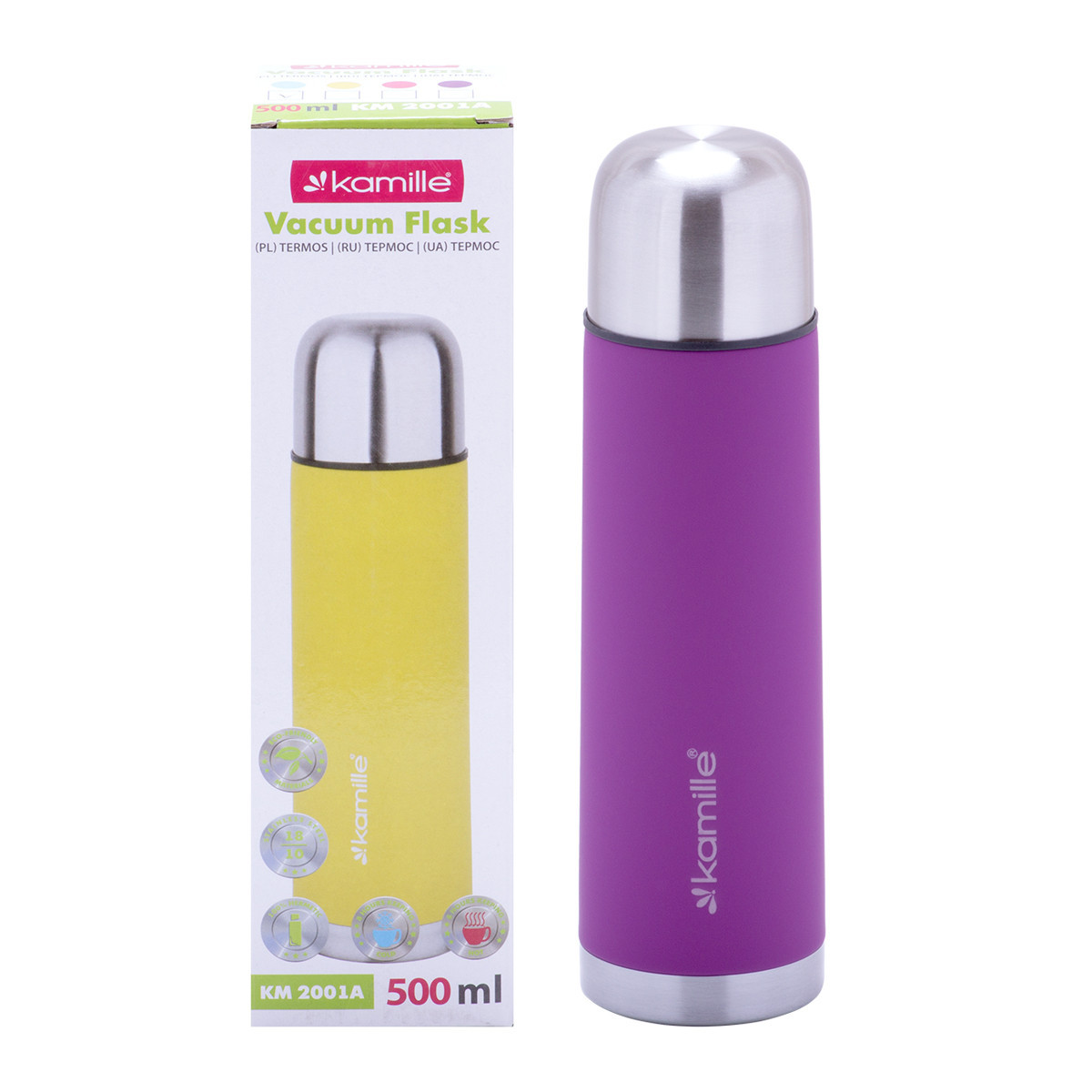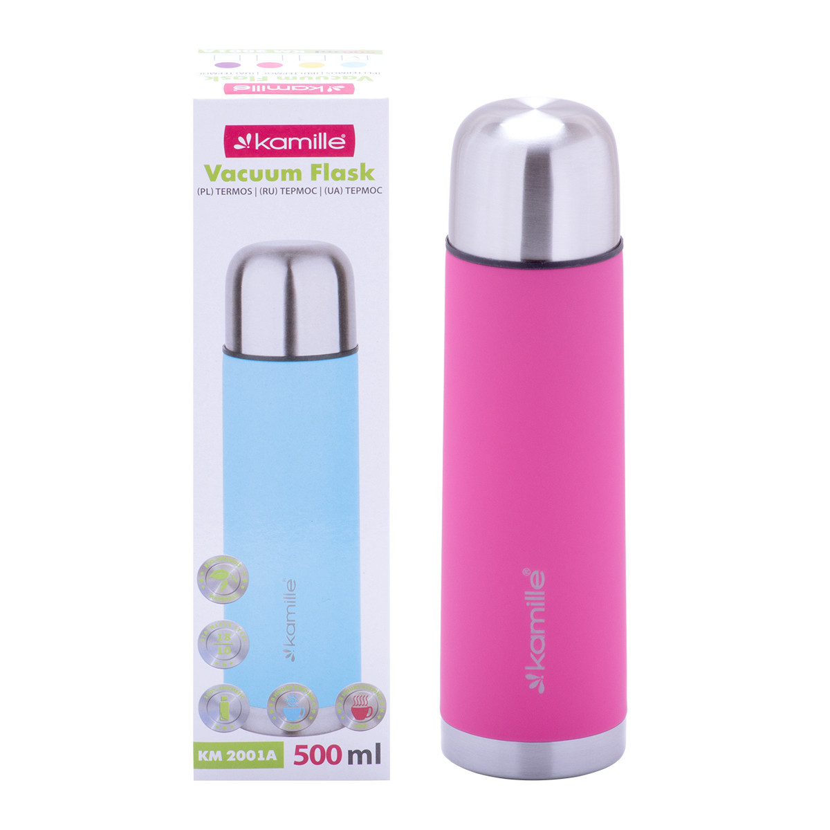 Термос Kamille розовый 500мл из нерж. стали с прорезиненным покрытием Km-2