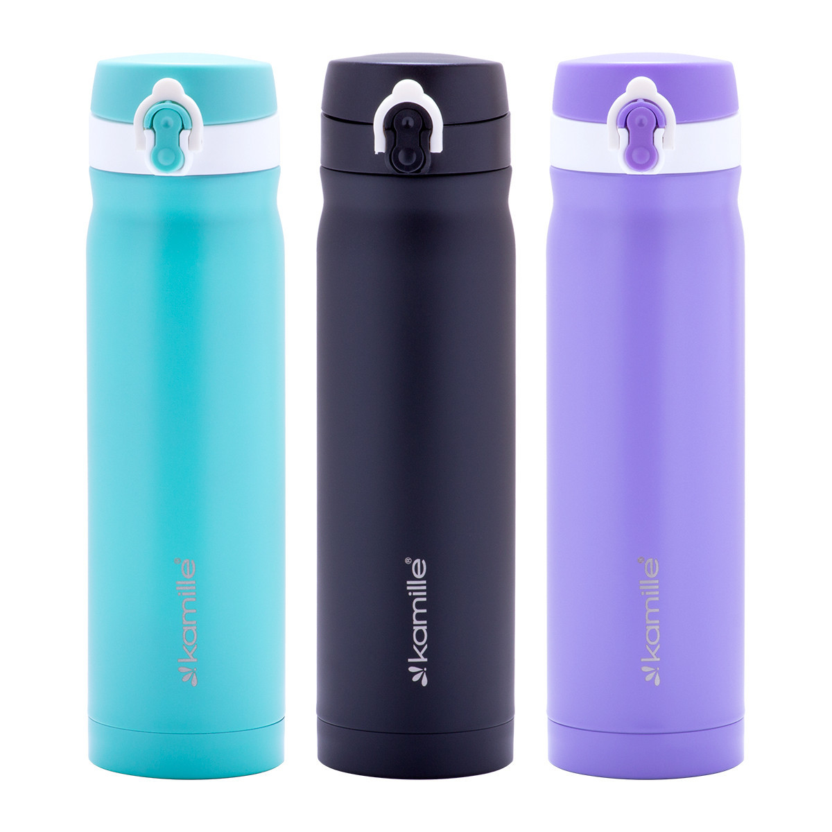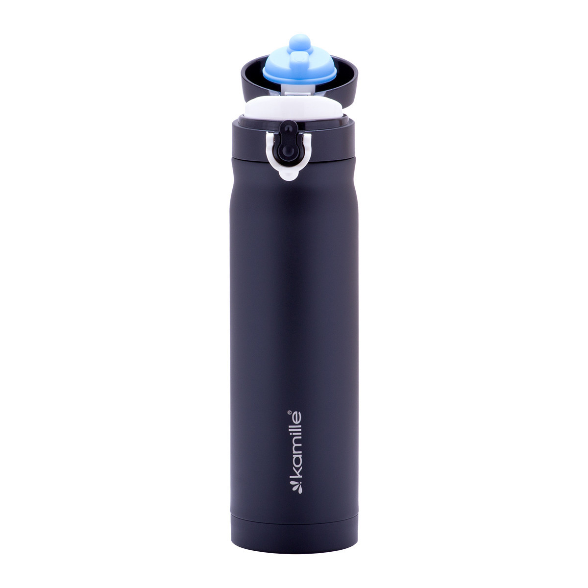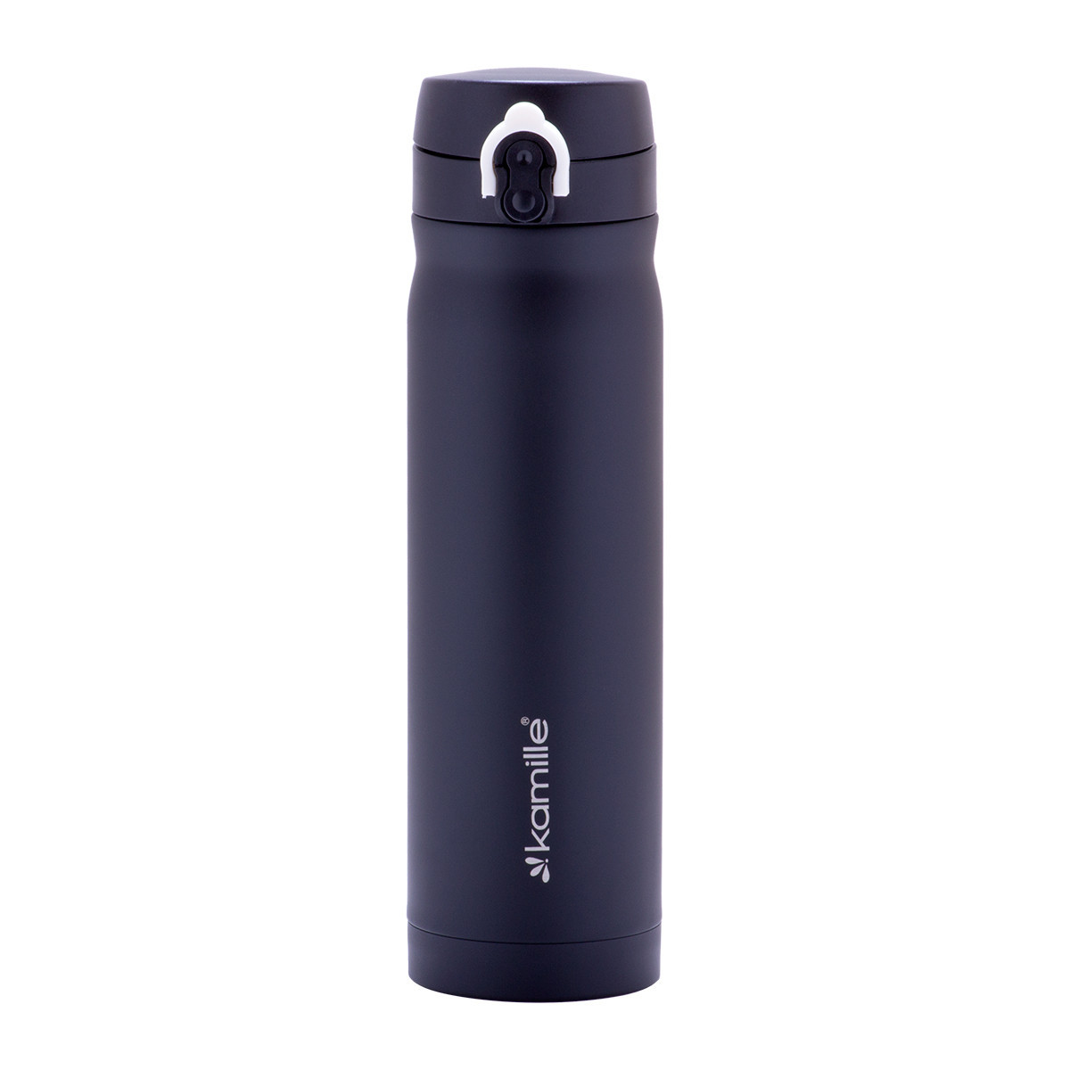 Термос-бутылка kamille 500мл из нержавеющей стали. Бренд: Kamille Описание: Термос Kamille обладает высоким качеством, надежностью, компактными размерами и эстетичным дизайном. Такой термос станет незаменимым в машине, на отдыхе или в путешествии. Тип термоса: питьевой Материал корпуса: нержавеющая сталь Материал колбы: нержавеющая сталь Материал крышки: пластик Объем: 500мл Высота: 24.5см Съемный клапан: нет Ручка: нет Поверхность: матовая Время сохранения температуры: 6-8 часов Варианты цветов: черный, голубой, фиолетовый Особенности: эксклюзивный дизайн высокопрочная конструкция удобная и прочная крышка-поилка 100% герметичен