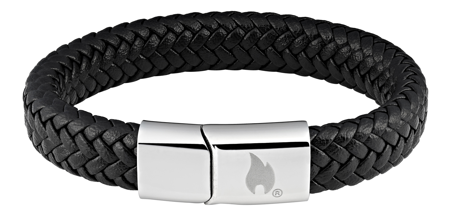 Браслет Zippo, чёрный, нержавеющая сталь/натуральная плетёная кожа, 20x1,2