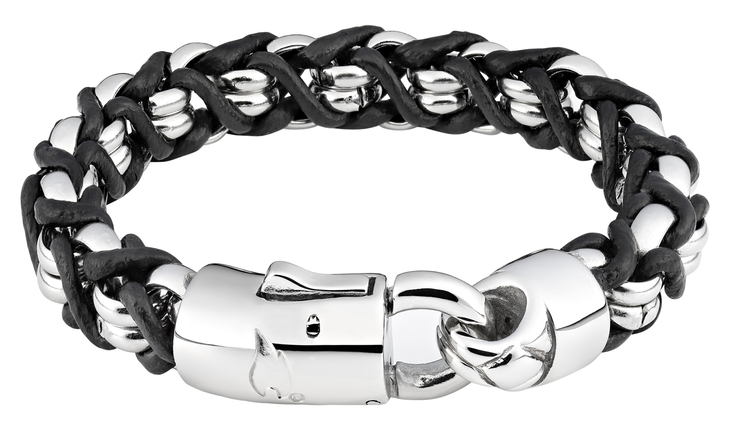 Браслет Zippo, чёрно-серебристый, нержавеющая сталь/натуральная кожа, 22x1