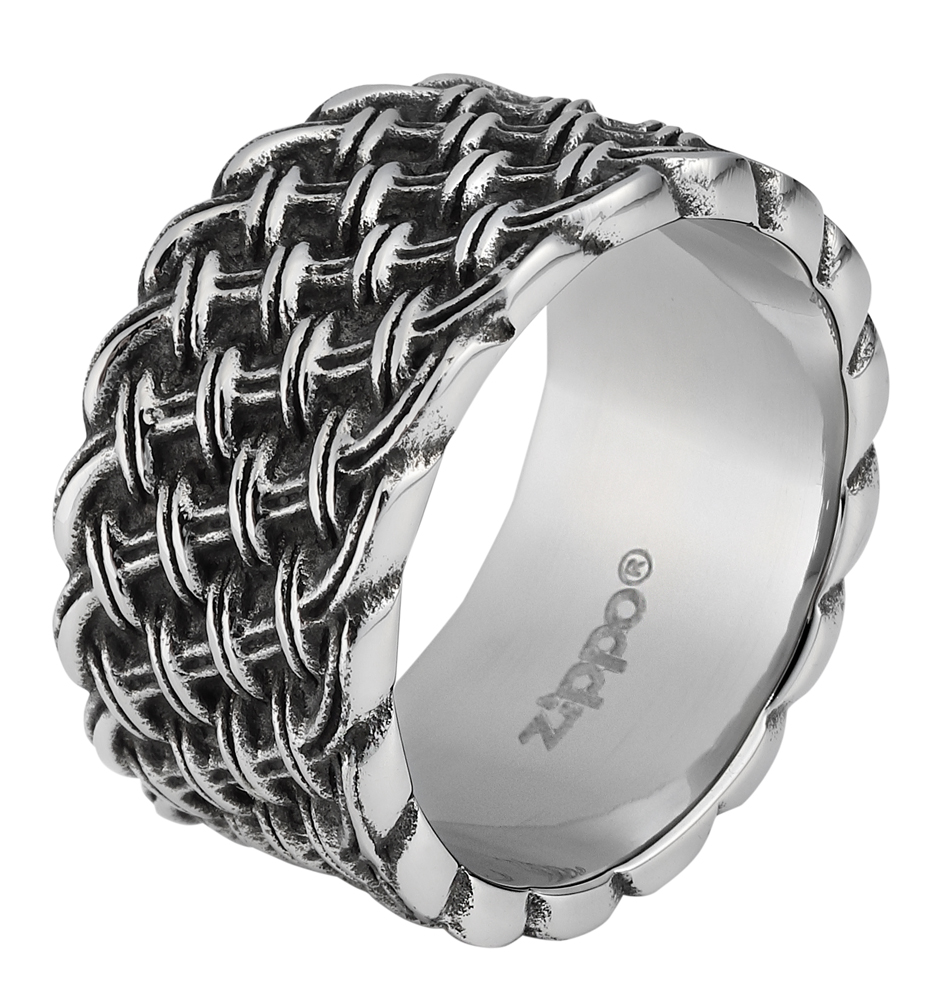 Кольцо Zippo, серебристое, с плетёным орнаментом, нержавеющая сталь, диаме