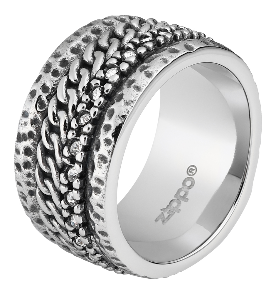 Кольцо Zippo, серебристое, с цепочным орнаментом, нержавеющая сталь, диаме