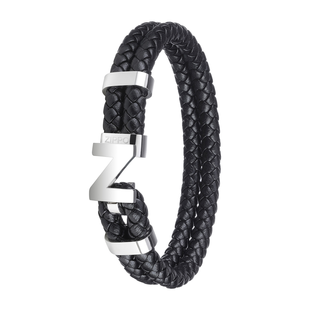 Браслет Zippo Steel Braided Leather Bracelet, чёрный, натуральная плетёная