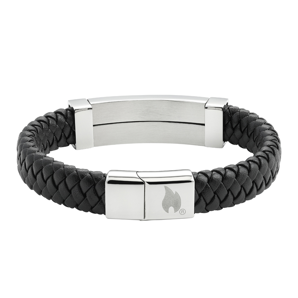 Браслет Zippo Steel Bar Braided Leather Bracelet, чёрный, натуральная кожа