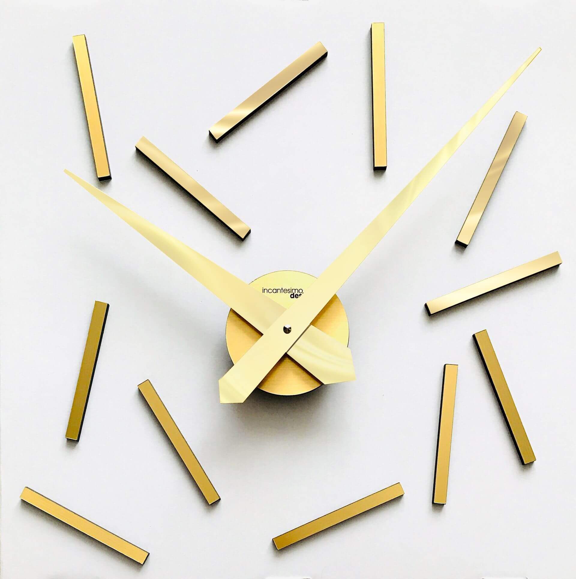 Настенные дизайнерские часы aurea. Настенные дизайнерские часы Aurea 200 Gold Настенные дизайнерские часы Aurea имеют надежный и бесшумный немецкий механизм UTS. Сделанные вручную с помощью высоких инновационных компьютерных технологий . Основа - метакрилат Стрелки - шлифованная тонкая сталь Бесшумный кварцевый механизм плавного хода - UTS, Германия Диаметр часов регулируется от 90 до 100 см. Батарейка АА В комплект входит: - часовой механизм со встроенными стрелками - стикеры-деления - шаблон для крепления на стену - саморез -батарейка 1АА Характеристики часов Incantesimo Design Модель Aurea 200 Gold: Механизм: Кварцевый Цвет: золотой Материал: металл Дизайн и производство: Италия (Милан) Гарантия: 1 год с момента покупки