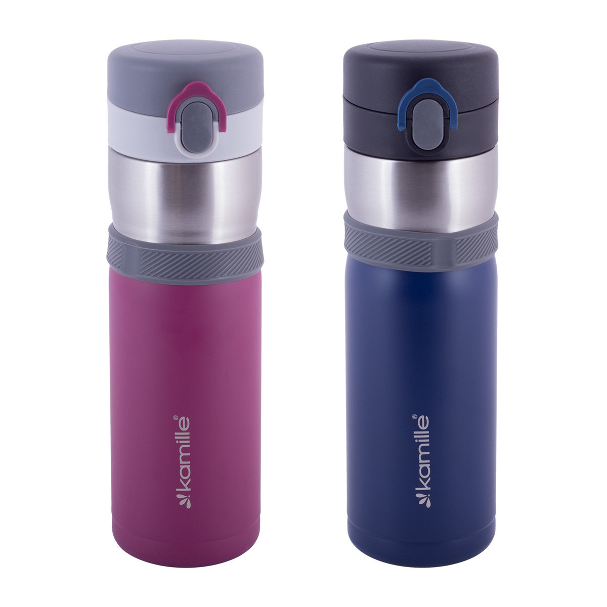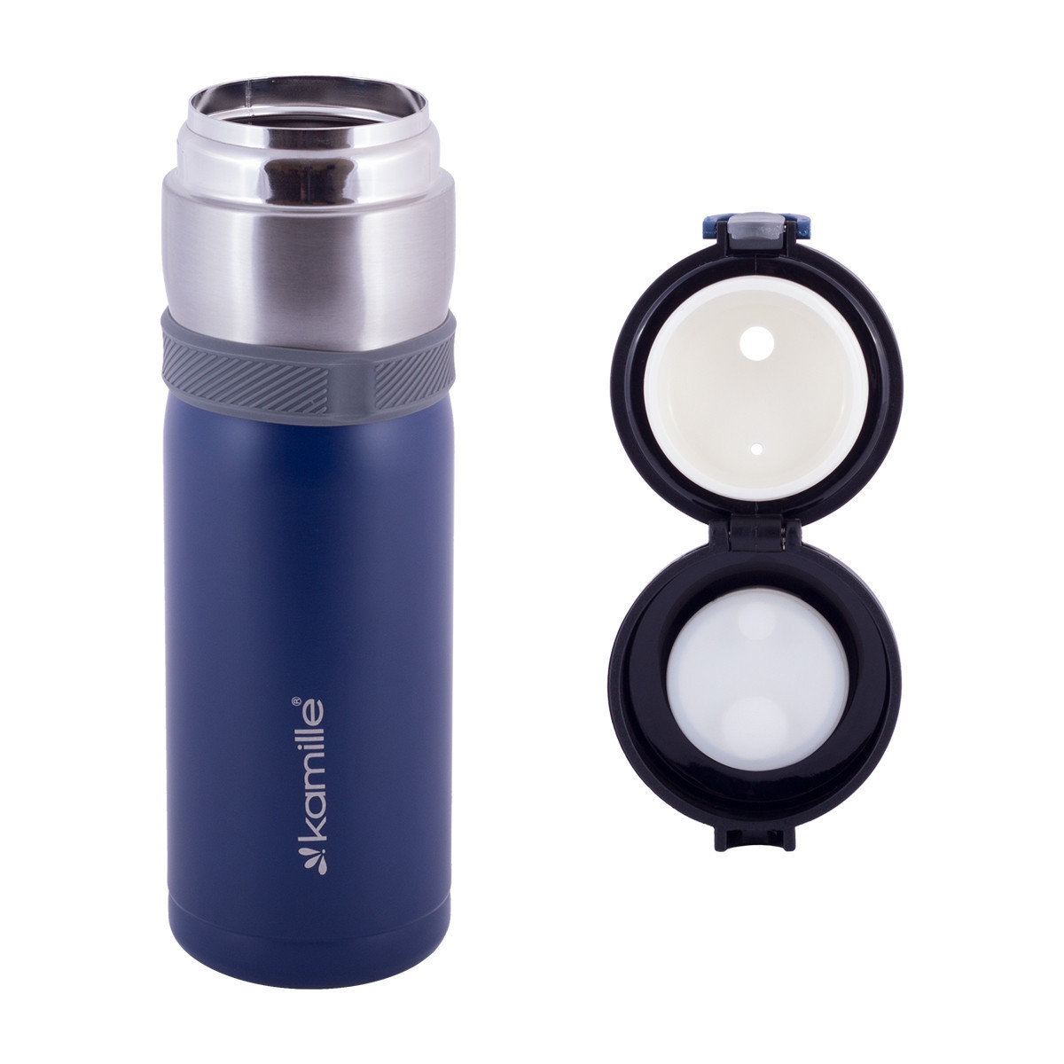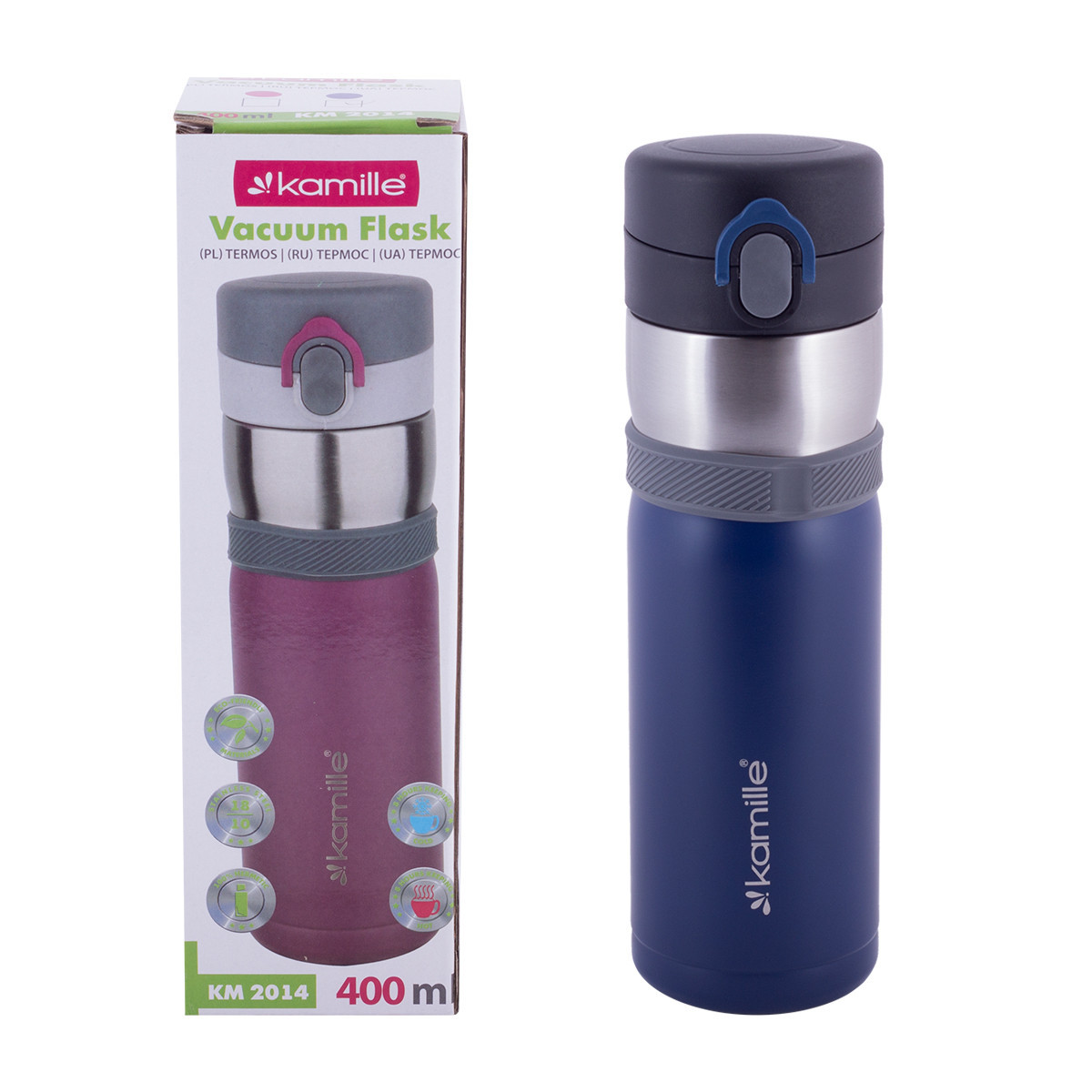 Термос-бутылка kamille синий 400мл из нержавеющей стали km-2014sn.