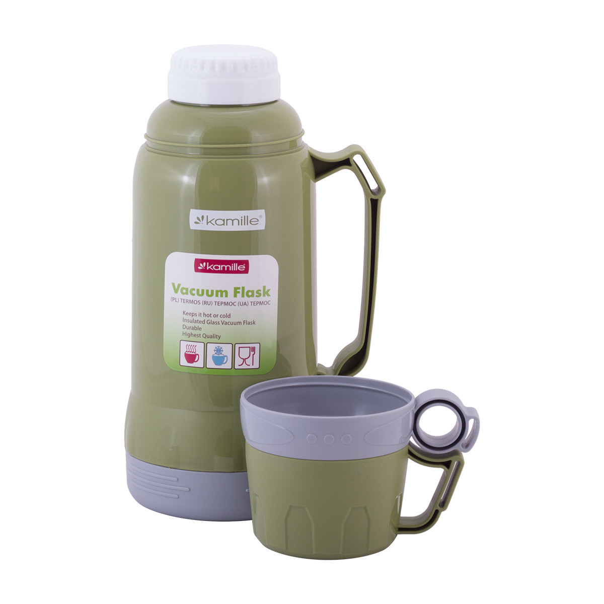 Термос kamille зеленый 1000мл пластиковый со стеклянной колбой km-2023zl. Бренд: Kamille Описание: Термос Kamille обладает высоким качеством, надежностью, компактными размерами и эстетичным дизайном. Такой термос станет незаменимым в машине, на отдыхе или в путешествии. Тип термоса: питьевой. Материал корпуса: пластик. Материал колбы: стекло. Материал крышки: пластик. Объем: 1000мл. Съемный клапан: нет. Количество чашек: 2. Ручка: есть. Материал чашек и ручки: пластик. Поверхность: глянцевая. Время сохранения температуры: 8-10 часов. Варианты цветов: фиолетовый, Зеленый, зеленый. Особенности: эксклюзивный дизайн высокопрочная конструкция удобный и прочный в использовании 100% герметичен Особенности: эксклюзивный дизайн высокопрочная конструкция удобный и прочный в использовании 100% герметичен