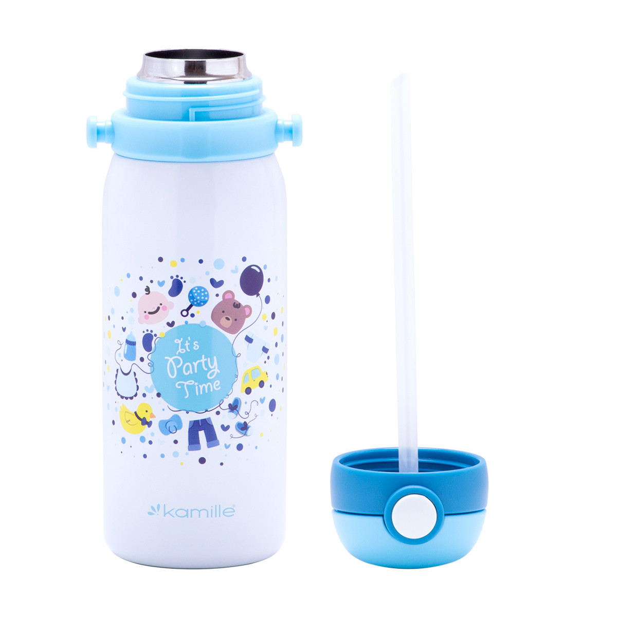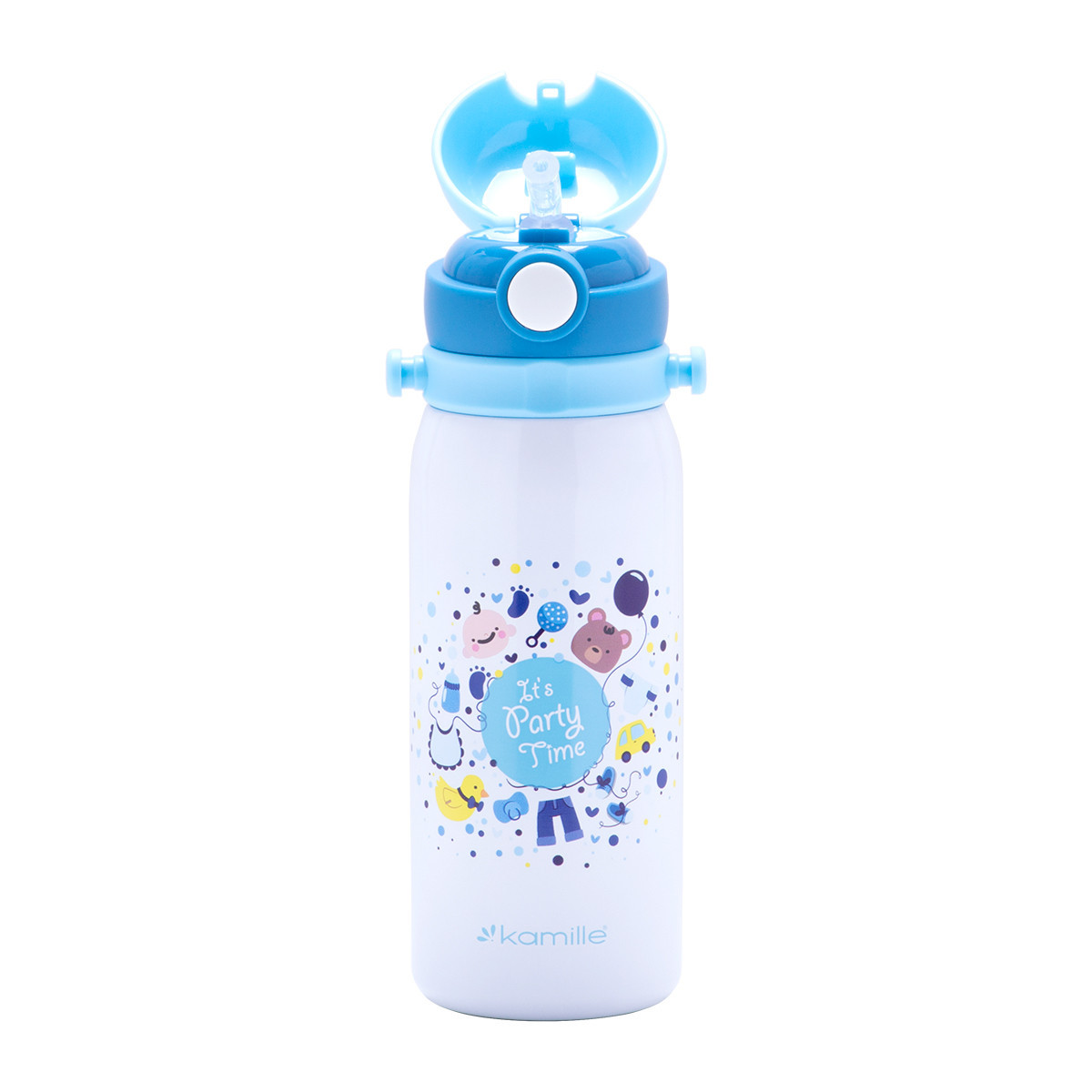 Термобутылка детская kamille 450мл из нержавеющей стали. Бренд: Kamille Описание: Детская термобутылка Kamille из нержавеющей стали обладает высоким качеством, надежностью, компактными размерами и эстетичным дизайном. Такая термобутылочка Kamille с индивидуальным дизайном станет просто незаменимой для Вашего ребенка в машине, на прогулке или в путешествии. Тип термоса: питьевой. Материал корпуса: нержавеющая сталь. Материал колбы: нержавеющая сталь. Материал крышки: силикон, пластик ПП. Объем: 450мл. Высота: 21см. Съемный клапан: есть. Наличие трубочки для питья: есть. Ремешок: есть. Рисунок: есть. Цвет: голубой, красный. Время сохранения температуры: 6-8 часов. Упаковка: картонная коробка 21,5*7,57,5см. Особенности: эксклюзивный дизайн высокопрочная конструкция удобная и прочная крышка-поилка 100% герметичен
