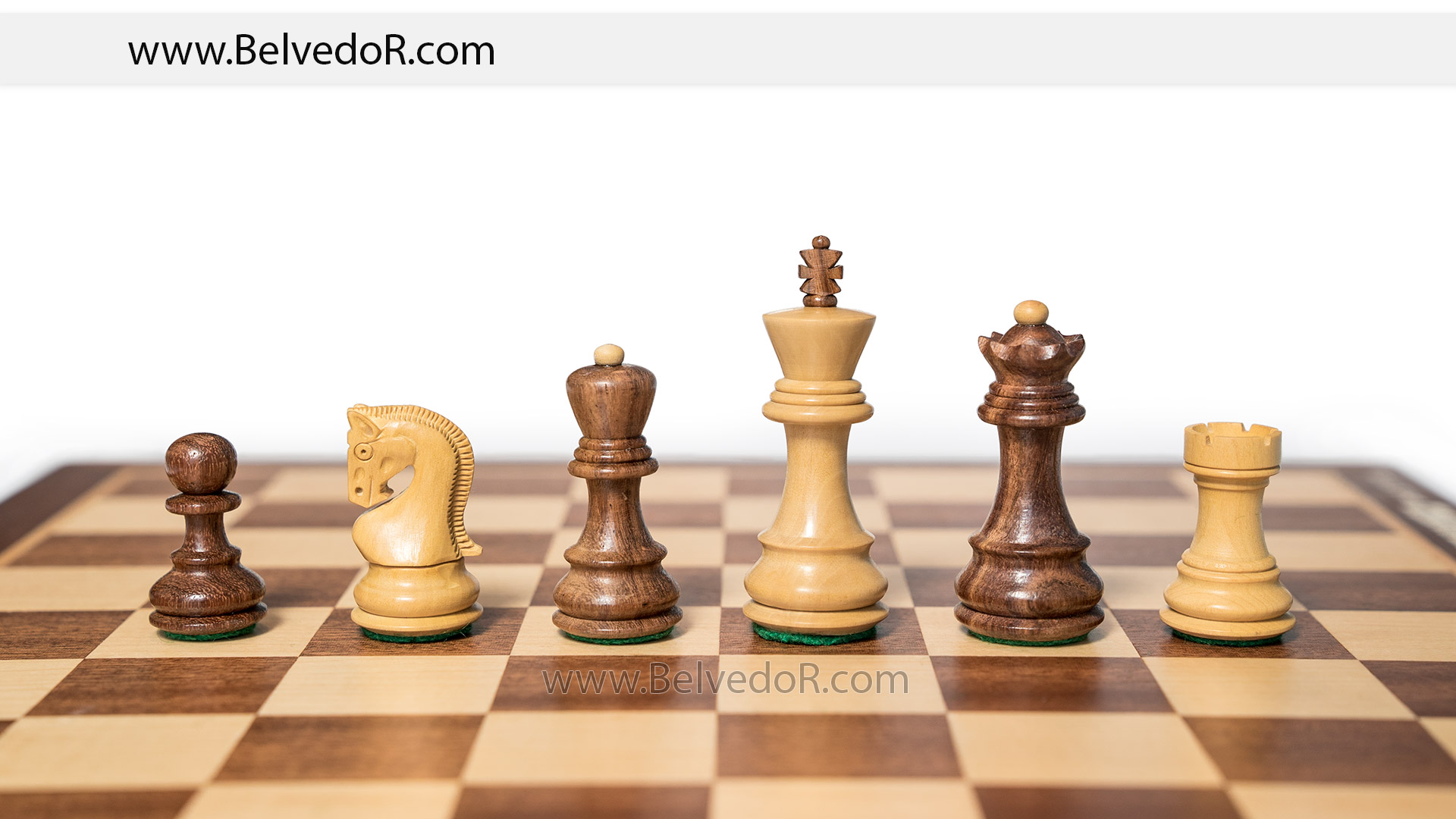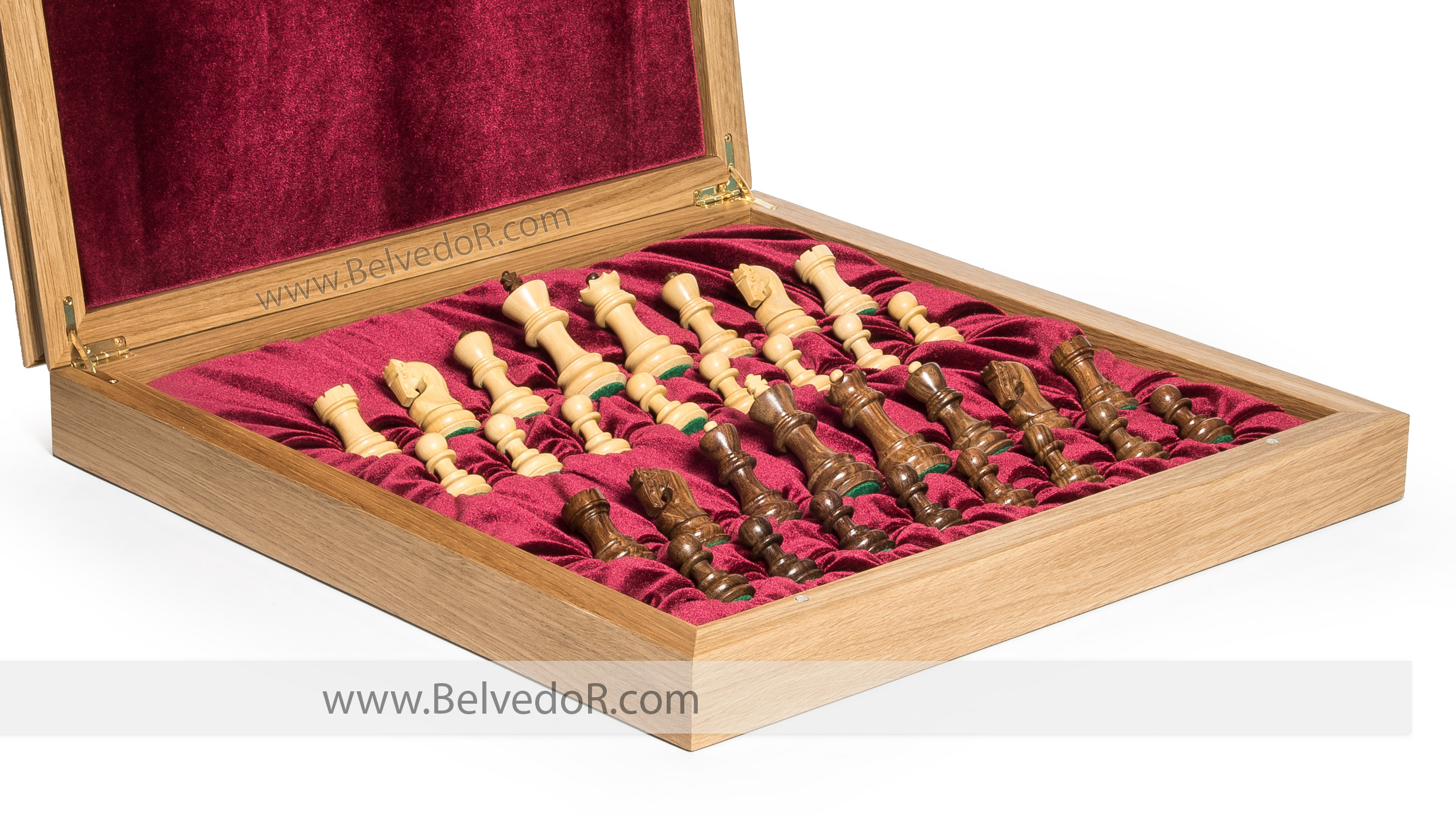 Шахматы в ларце дуб "российская классика", фиг. самшит и палисандр 45х45см