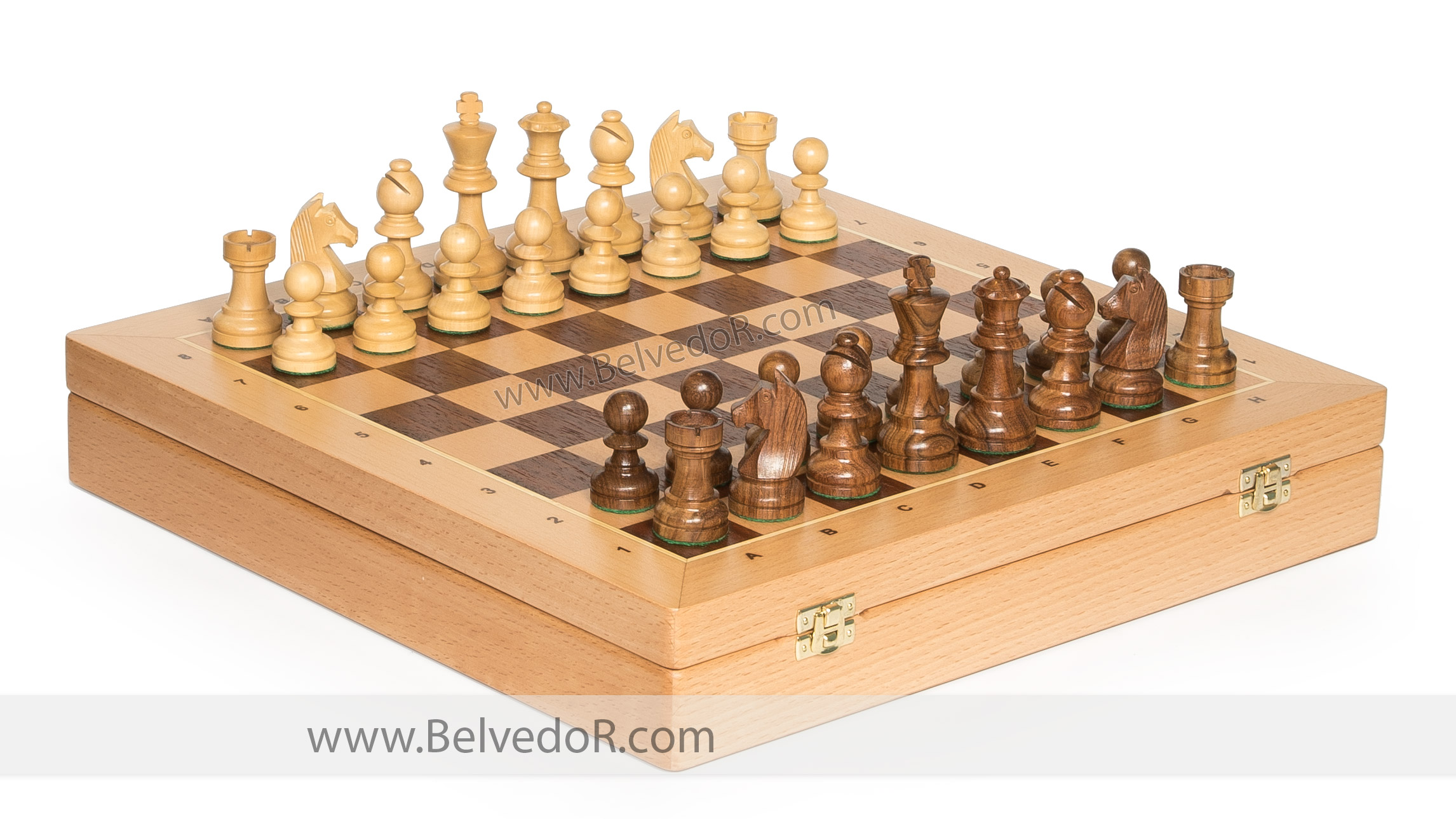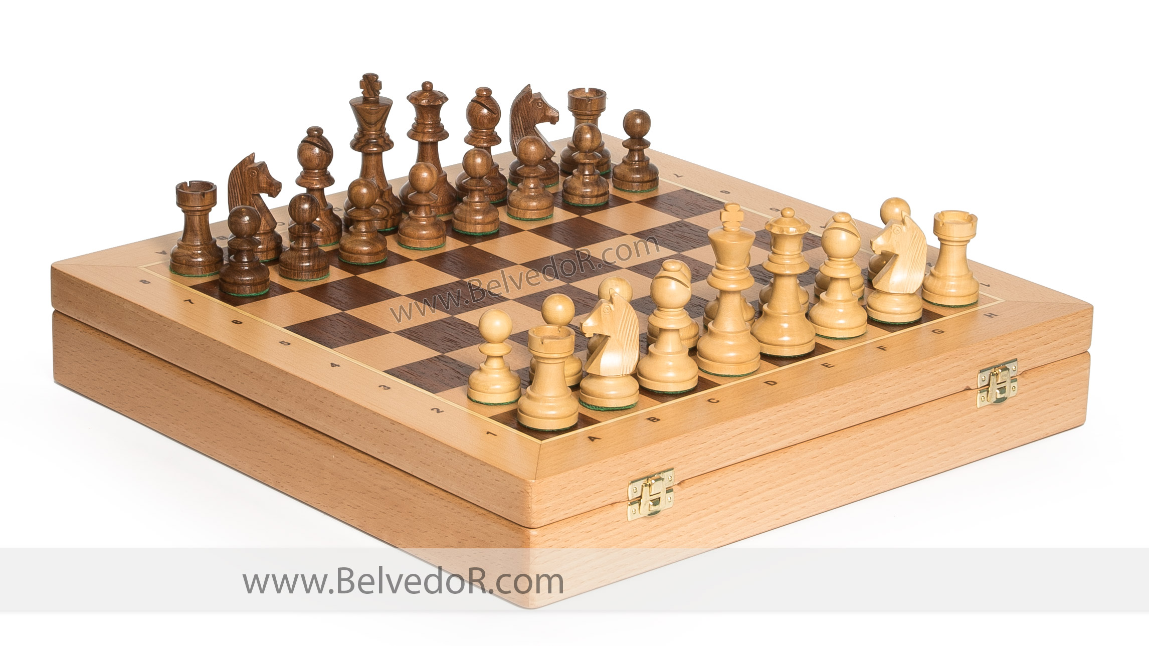 Шахматы в ларце "классические", фигуры самшит и палисандр, 40х40см