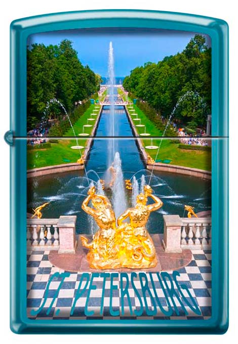 Описание: Зажигалка ZIPPO Петергофский фонтан, с покрытием Sapphire™, латунь/сталь, синяя, глянцевая, 36x12x56 мм