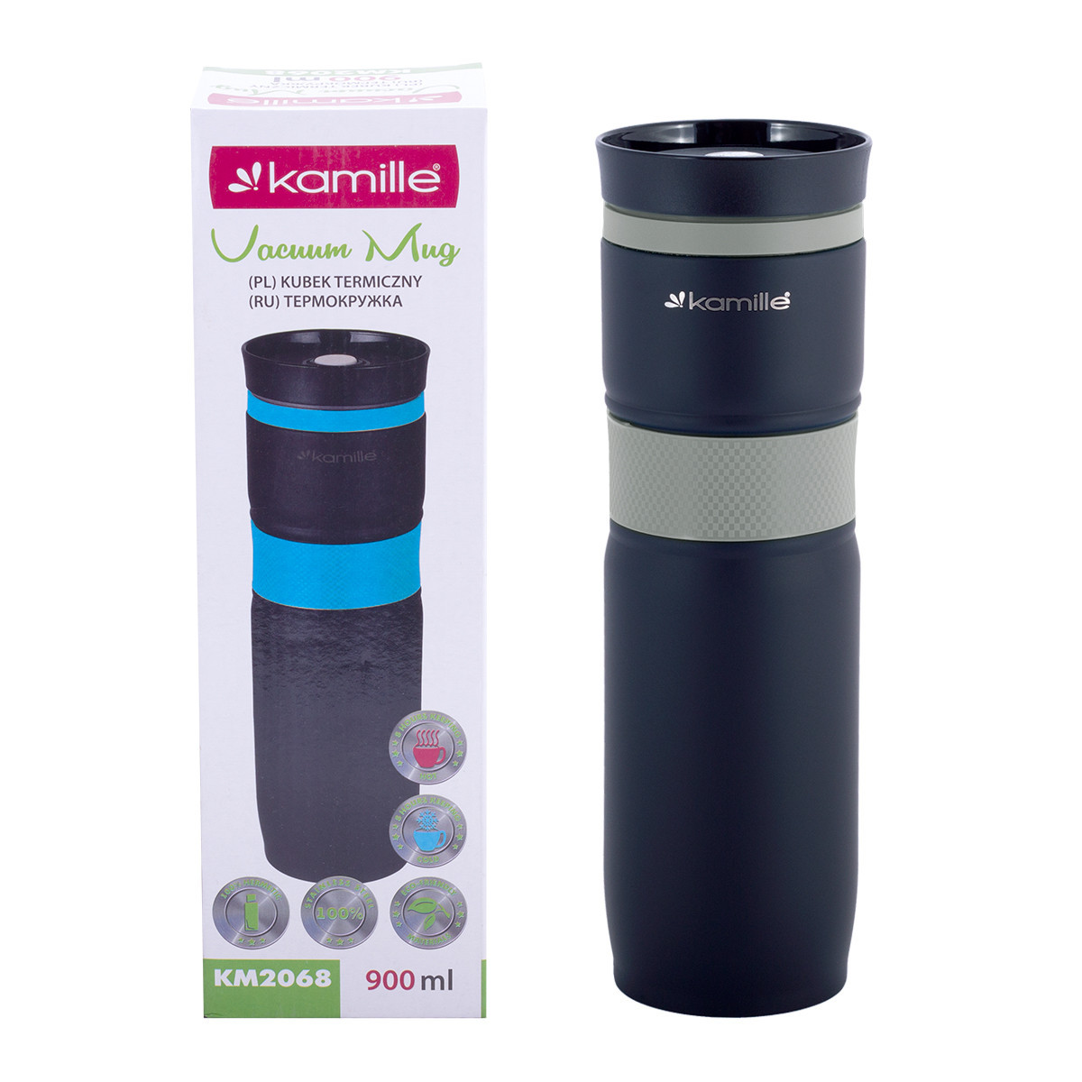 Термокружка kamille серый 900мл из нержавеющей стали с tpr-вставкой km-206. Бренд: Kamille Описание: Термокружка Kamille обладает высоким качеством, надежностью, компактными размерами и эстетичным дизайном. Такая термокружка станет незаменимой в машине, на отдыхе или в путешествии. Материал корпуса: нержавеющая сталь Материал колбы: нержавеющая сталь Материал крышки: пластик Съемный клапан: да (выкручивается из основной части крышки) Материал накладки: TPR резина Объем: 900мл Высота: 28см Ручка: нет Время сохранения температуры: 6-8 часов Варианты цветов: Серый, красный, зеленый Особенности: эксклюзивный дизайн высокопрочная конструкция удобная и прочная крышка-поилка 100% герметичен