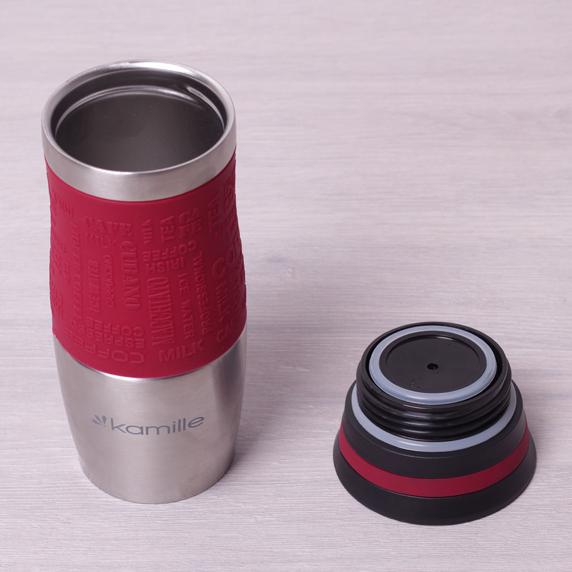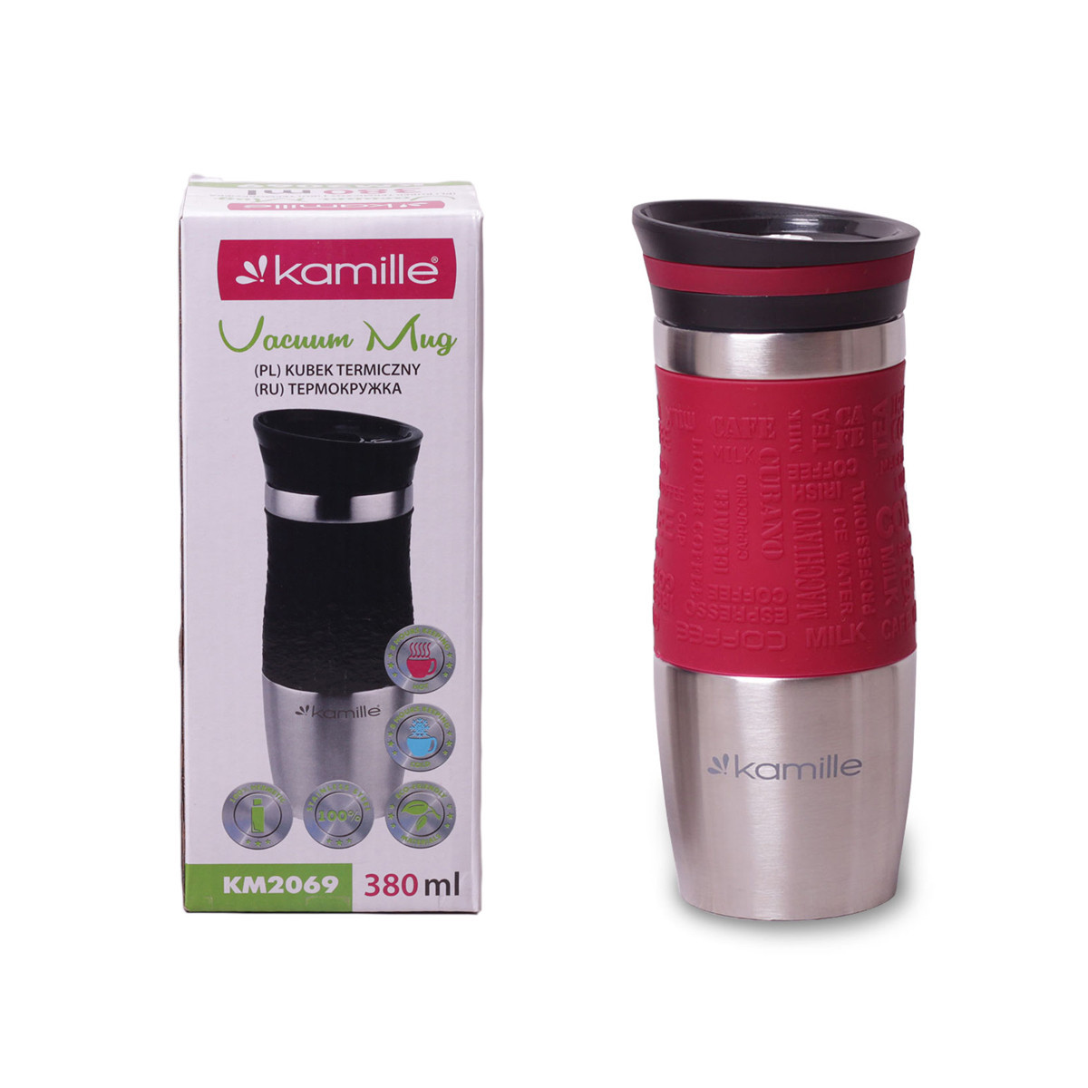 Термокружка kamille красный 380мл из нержавеющей стали с tpr-вставкой km-2. Бренд: Kamille Описание: Термокружка Kamille обладает высоким качеством, надежностью, компактными размерами и эстетичным дизайном. Горячее остается горячим, а холодное — холодным. Такая термокружка станет незаменимой в машине, на отдыхе или в путешествии. Материал: корпус и колба из нержавеющей стали пластиковая крышка-клапан TPR-накладка на корпусе полиэстеровый ремешок Объем: 380мл Высота: 20см Варианты цветов: красный, Красный Особенности: эксклюзивный дизайн высокопрочная конструкция сохраняет тепло/холод 6-8 часов 100% герметичен